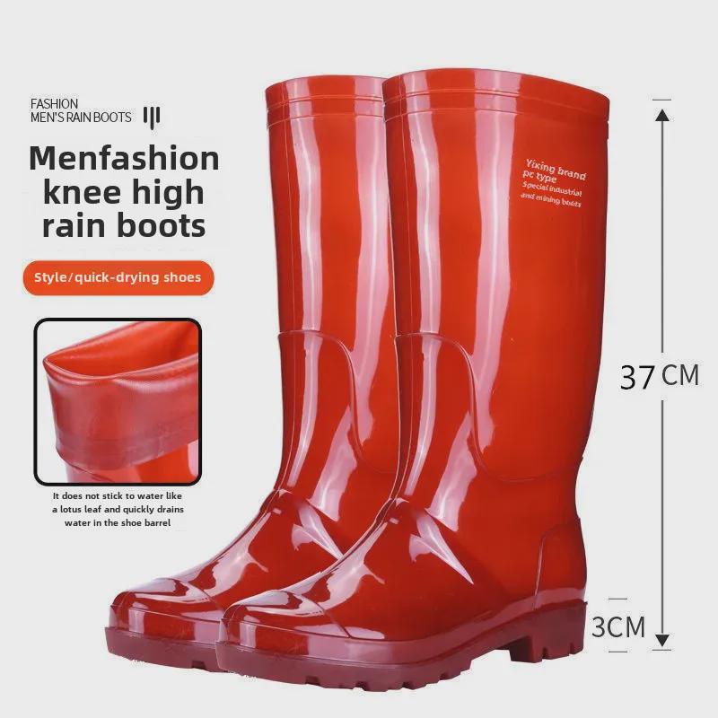 Мужские нескользящие водонепроницаемые коричневые резиновые сапоги из ПВХ, высокие резиновые ботинки для горнодобывающей промышленности, защитная обувь для труда.