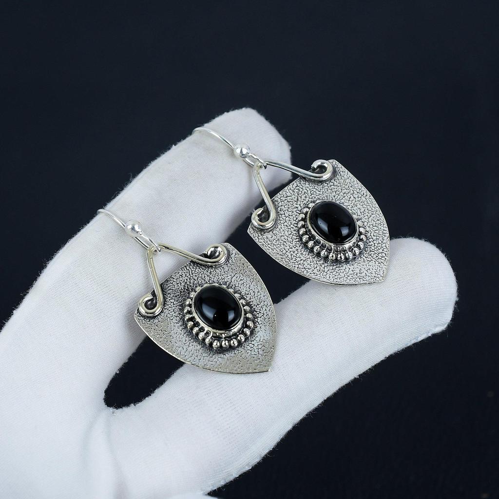 Серьги из натурального черного оникса, серьги из стерлингового серебра 925 пробы, серьги-подвески из серебра ручной работы в стиле бохо, подарок на помолвку