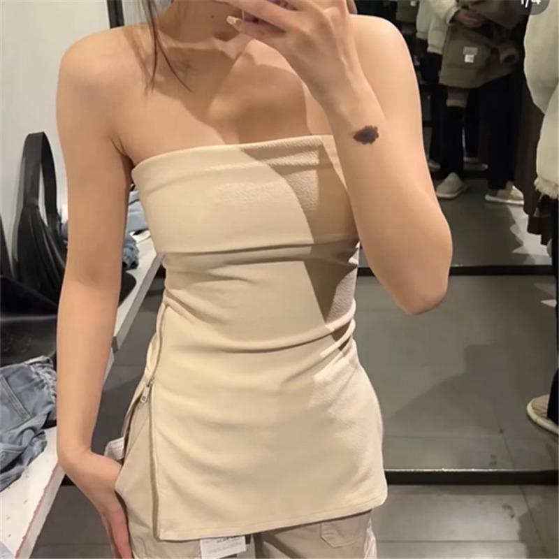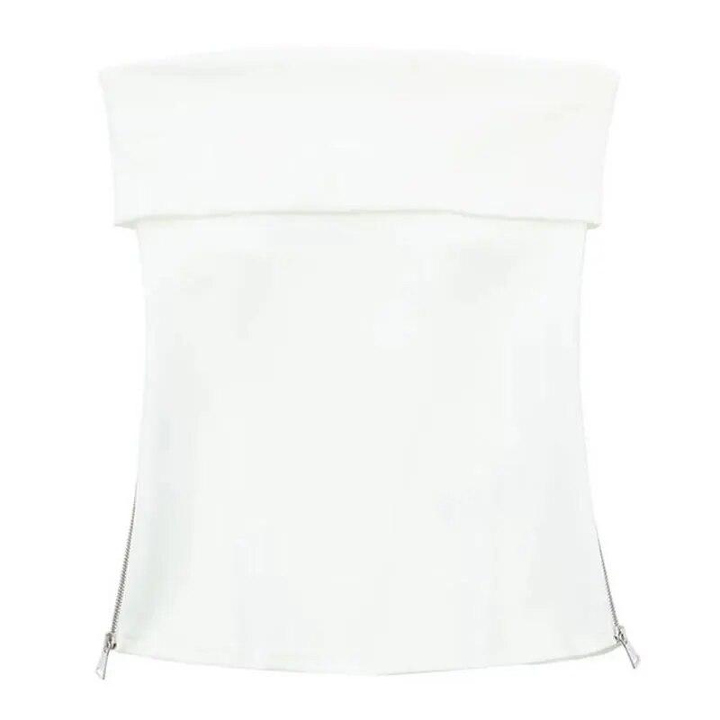 Женский корсет без бретелек с лямкой на шее и боковой молнией, однотонные винтажные топы с открытыми плечами, сексуальные короткие, острые, тонкие бюстье с открытой спиной, топы, жилет Y2k, уличная одежда