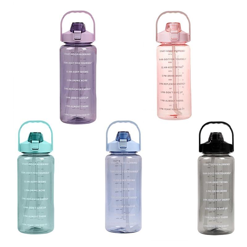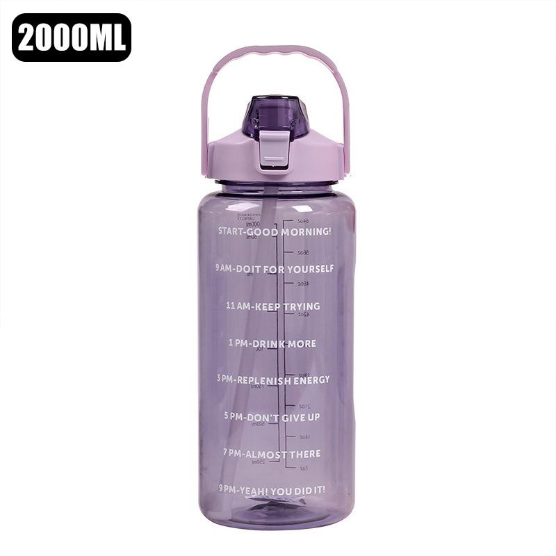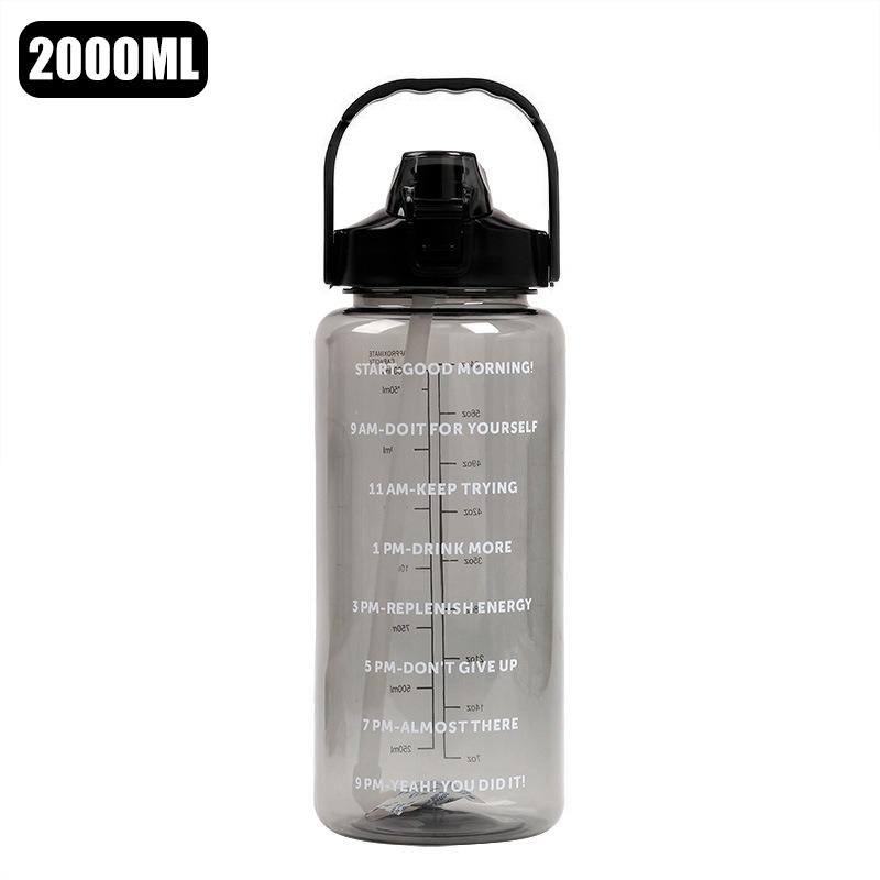2-литровые спортивные бутылки для питья на открытом воздухе с отметкой времени. Бутылка с соломинкой. Чашка большой емкости для улицы. Бутылка для воды для фитнеса. Устойчива к падениям и термостойкая.