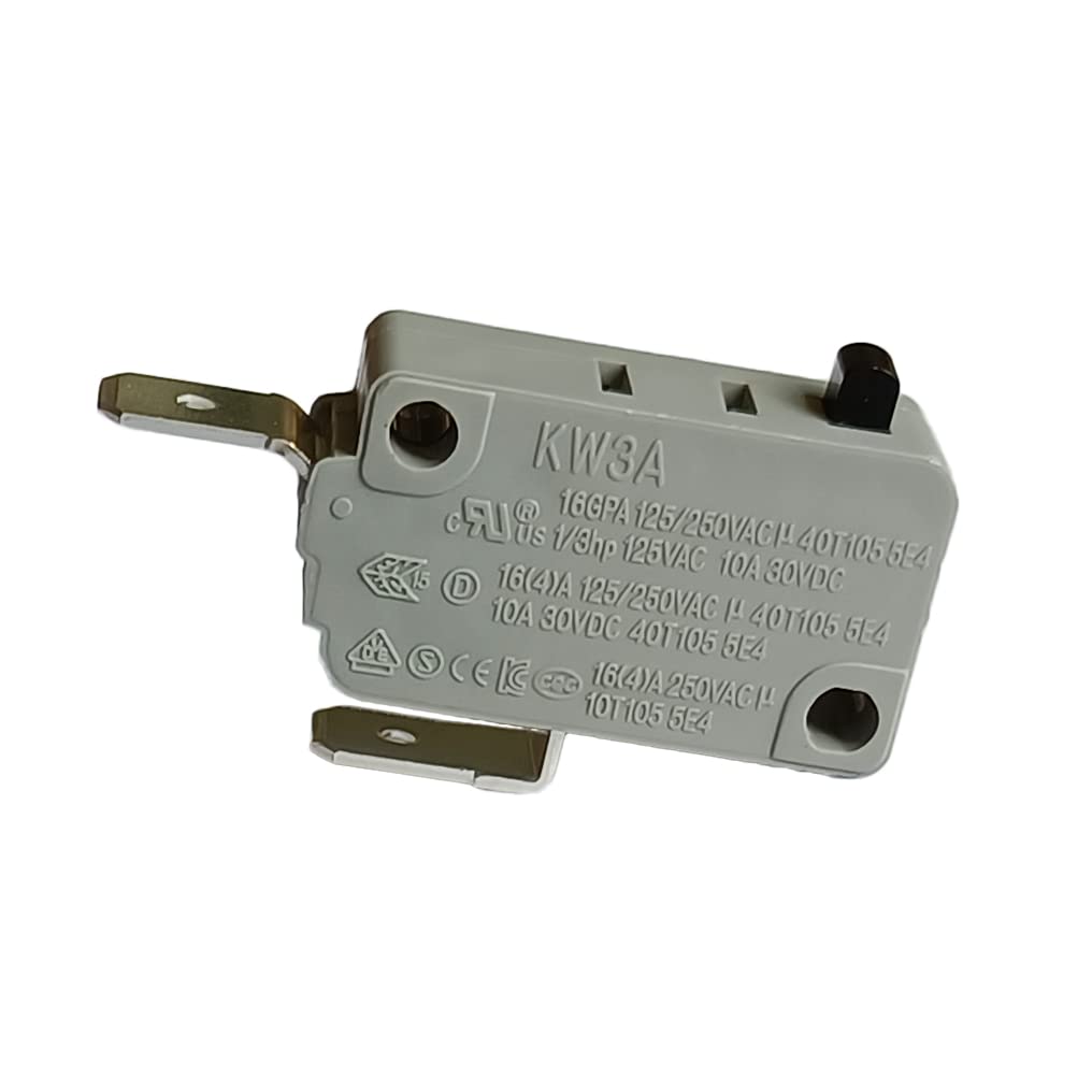 Микропереключатель KW3A, блокировочный выключатель дверцы микроволновой печи 16A 125V/250V, нормально закрытый, совместим с микроволновой печью Panasonic, блокировочный выключатель дверцы микроволновой печи KW3A, широкое применение: Совместимо с большинством микроволновых печей.. Если ваша микроволновая печь не вращается или не нагревается должным образом, возможно, проблема в выключателе дверцы.. Наш дверной выключатель — это хорошая замена, которая поможет решить вашу проблему.. Безопасно для использования в микроволновой печи Panasonic. Цвет в основном серый. Изготовлено из высококачественного пластика, прочное и надежное. Размер: Каждый размер составляет приблизительно 1,5 дюйма/3,9 см в длину, 0,75 дюйма/1,89 см в ширину. Содержимое упаковки: 1 x Микро переключатель
