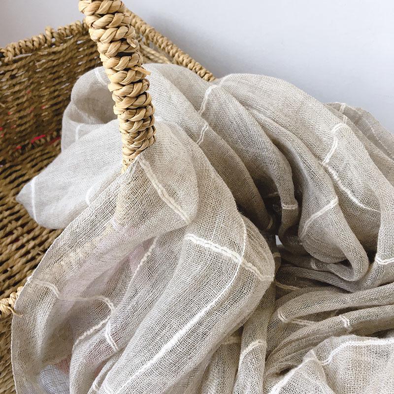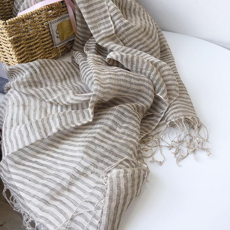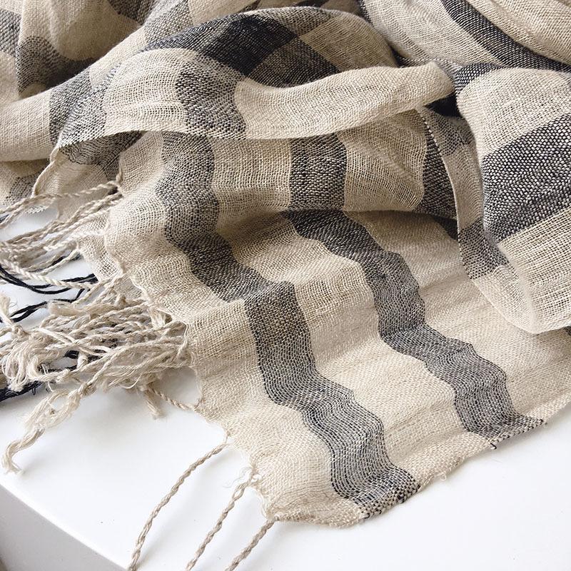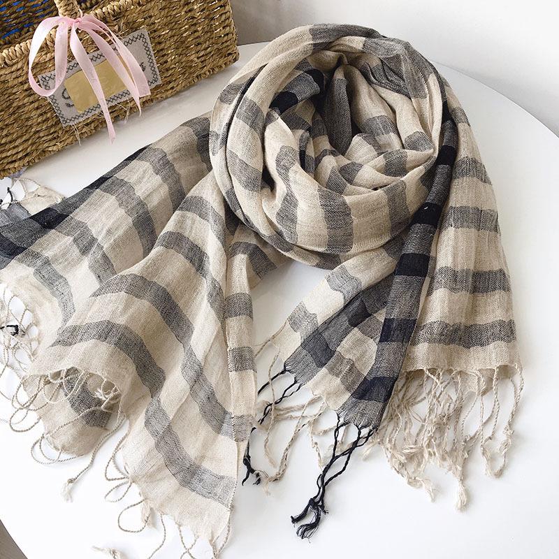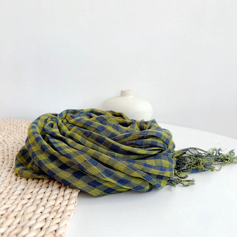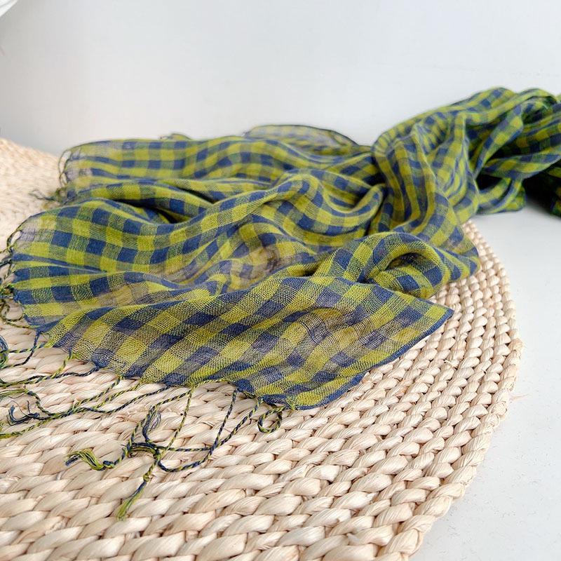 Японский ретро-шотландский шарф из чистого льна: Большая шаль для путешествий, пляжа и солнца - женская коллекция весна/лето