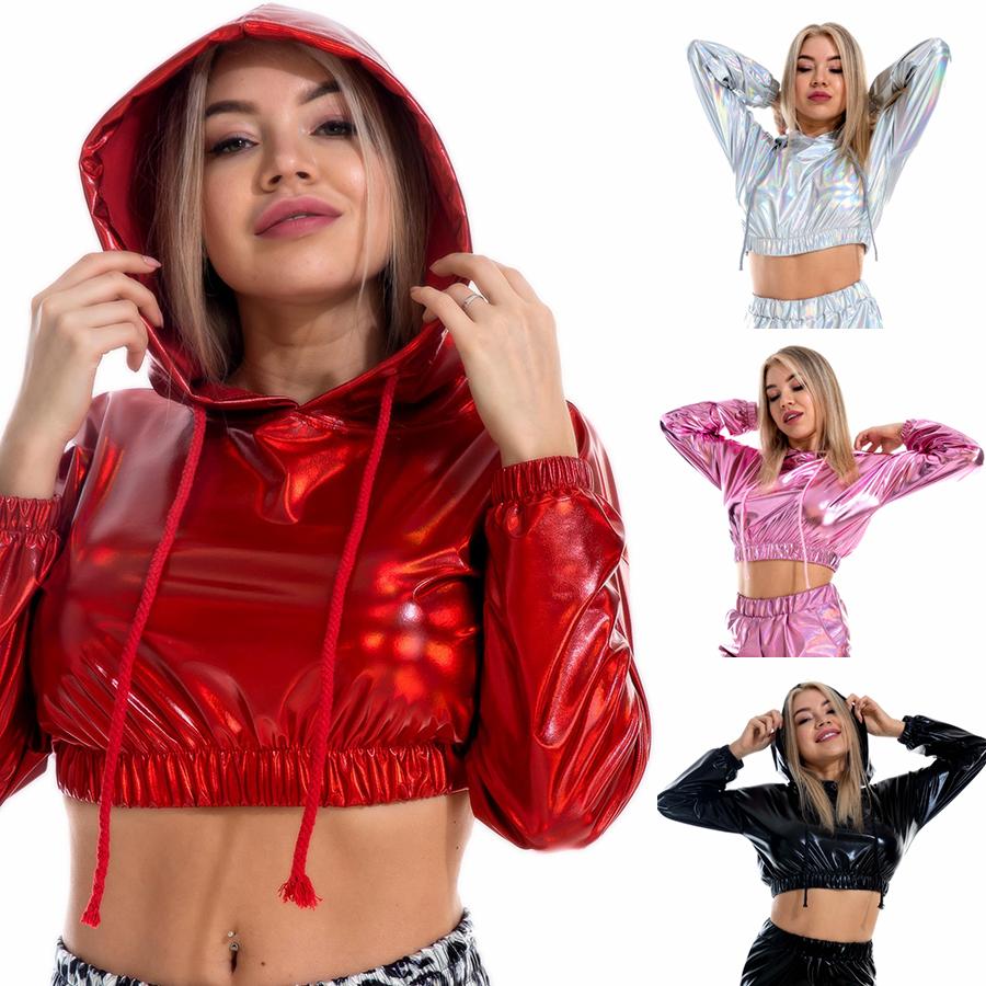 *Металлические топы для женщин : Женская регулируемая толстовка из искусственной кожи с металлическим отливом и длинными рукавами для рейв-фестивалей. Яркие цветные хип-хоп топы с капюшоном, искусственная кожа рейв одежда для женщин фестиваль. Повседневный стиль, его можно легко сочетать с любой одеждой, такой как джинсы, леггинсы, спортивные штаны, брюки-джоггеры, шорты, юбки и т. д.. Также можно сочетать с обувью на плоской подошве, каблуками, шлепанцами, кроссовками и т. д.. Сделает вас еще более великолепной и привлекательной, будет выглядеть супер модно.