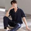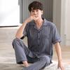 Летняя мужская пижама с коротким рукавом и длинные брюки, мужская домашняя одежда, кардиган больших размеров из хлопка для папы среднего возраста, пижама для мужчин