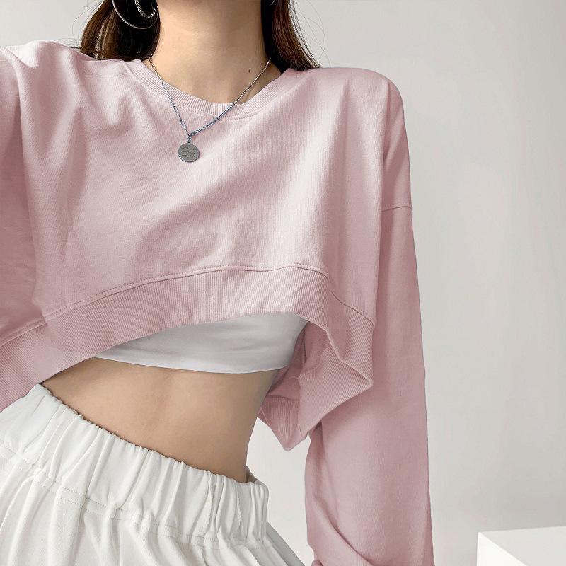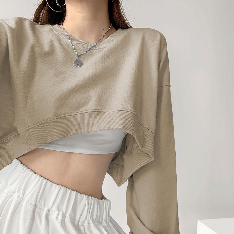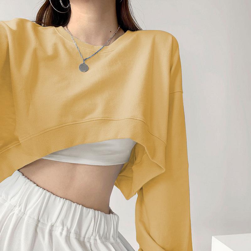 «Женский сексуальный свободный осенний свитер»: Короткий однотонный топ с длинными рукавами, доступен в восьми цветах.