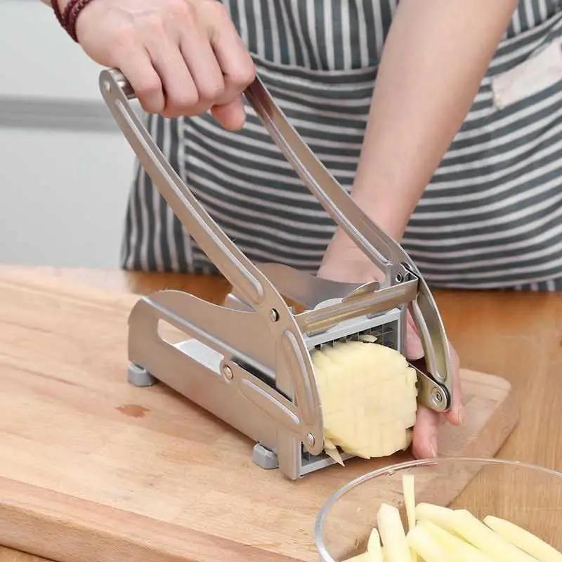Картофельная ломтерезка, нож для нарезки картофеля фри с 2 лезвиями из нержавеющей стали, многофункциональный измельчитель из нержавеющей стали, ручной режущий инструмент