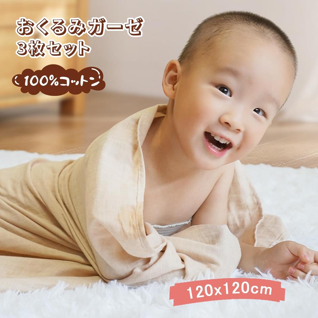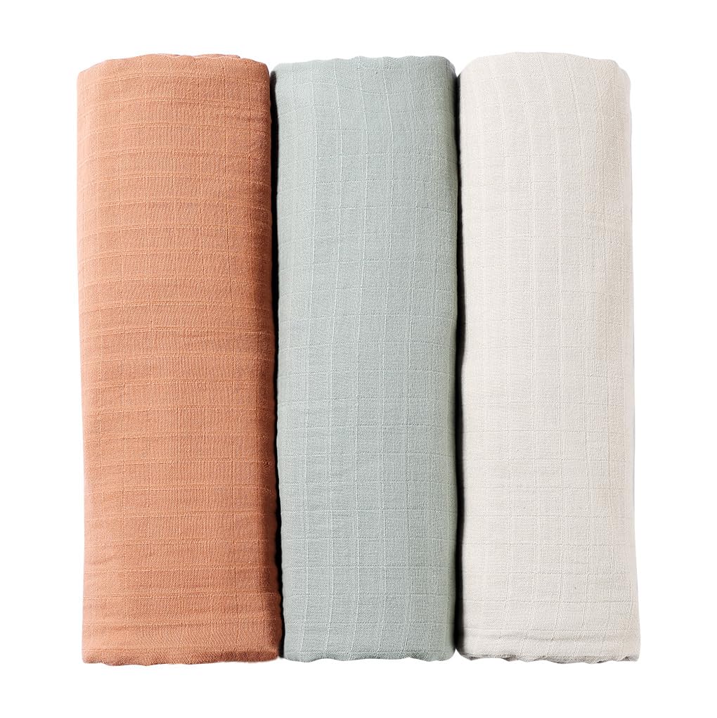 Пеленка из марли для младенцев, детское банное полотенце, мягкая хлопковая двойная марлевая накидка для кормления новорожденных 120x120 см, набор из 3 [MOMSMENU] 100%