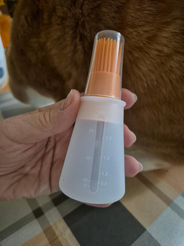 Выйграла силиконовую щеточку бутылку для масла, прикольная,на 80 мл. Хорошо закручивается. В деле ещё не пробовала,но думаю будет удобно смазывать сковородки. Продавца рекомендую.