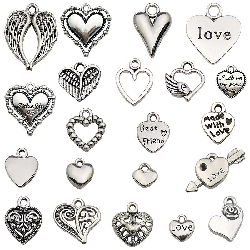 «Набор украшений в стиле ретро с подвесками в форме сердца из 20 предметов: Аксессуары из сплава: ожерелье, браслет и кулон в форме сердца.