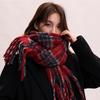 Зима 2024 Женский мохеровый шарф в клетку: Высококачественный, корейский стиль, универсальный, пушистый, толстый, теплый.