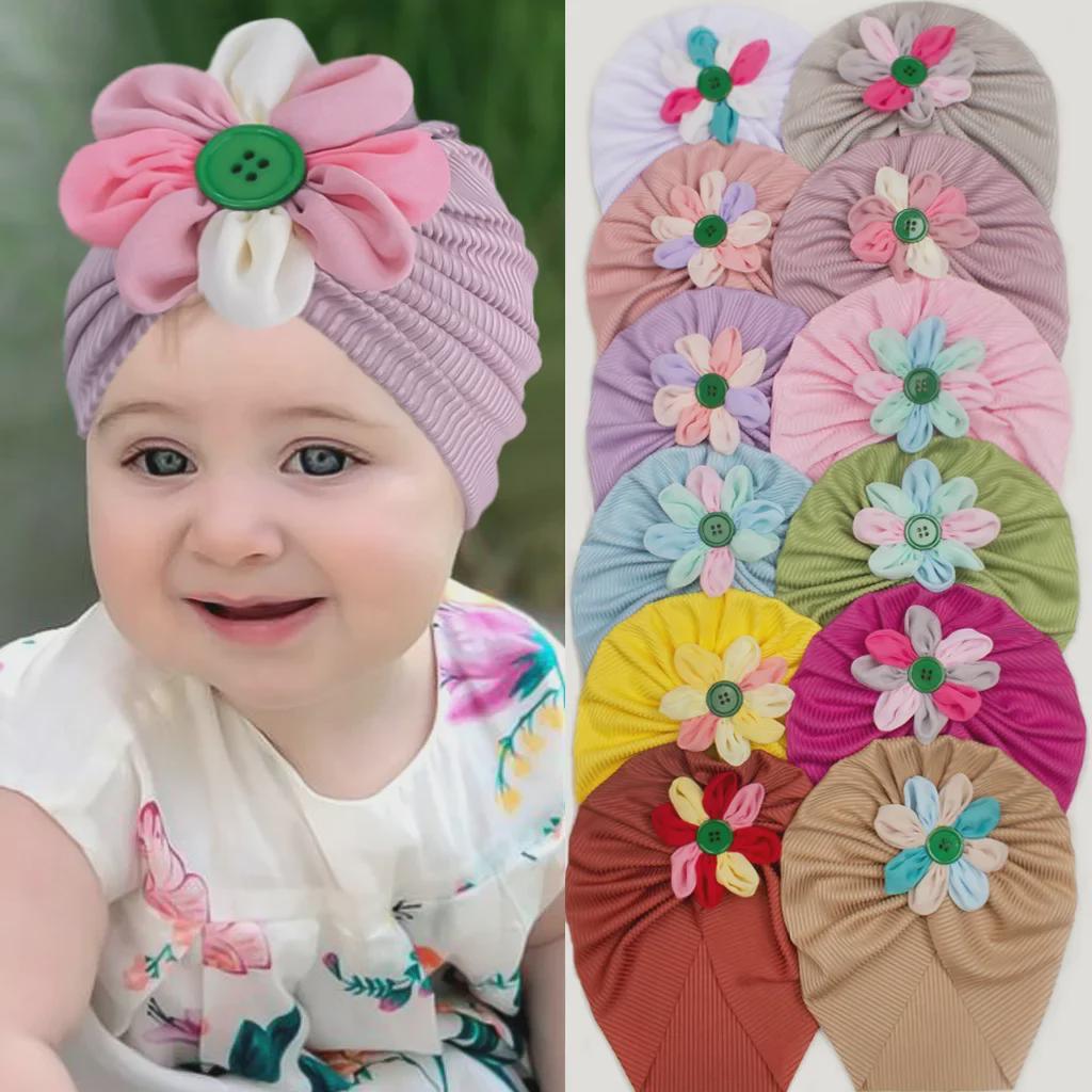Цветная цветочная шапка-пуловер для девочки с мягкой резинкой