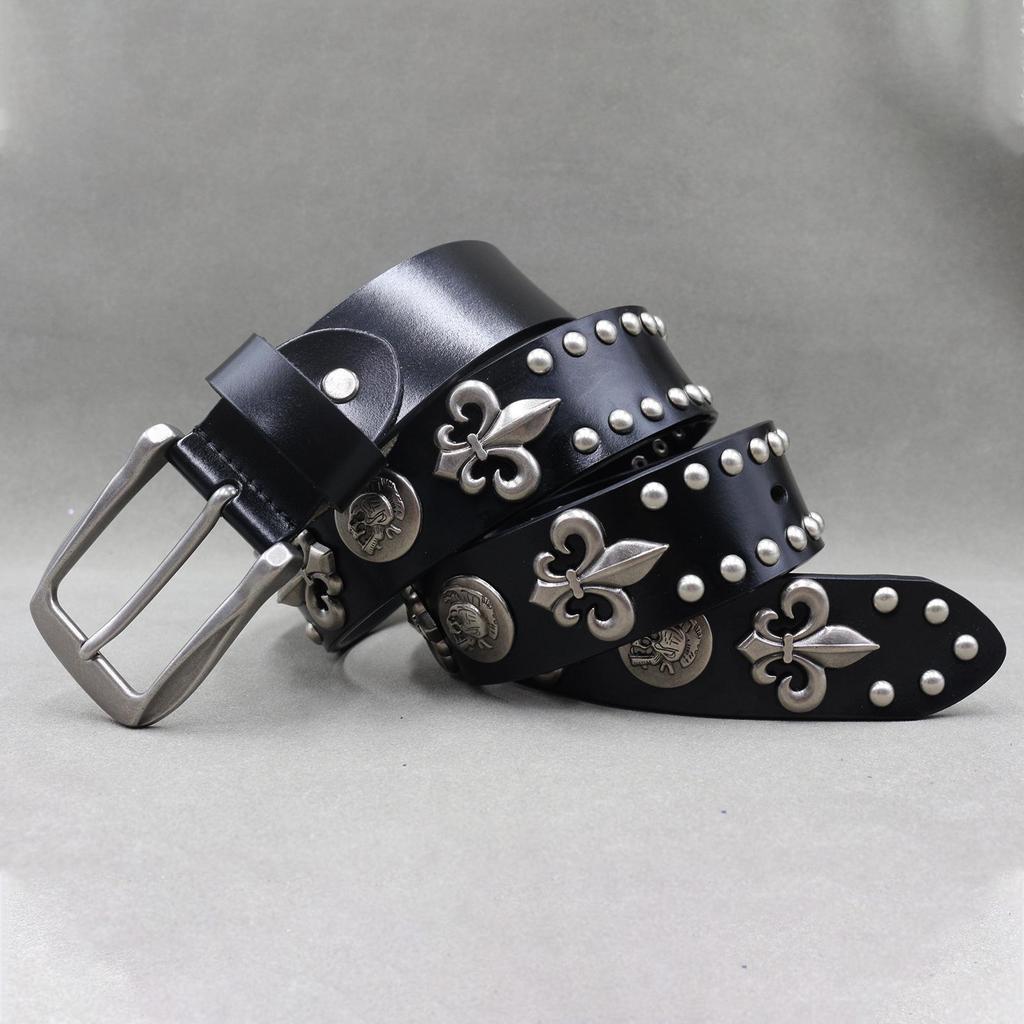 Ремень унисекс из натуральной кожи с заклепками в виде черепа - декоративный аксессуар из натуральной коровьей кожи — купить товар онлайн с бесплатной доставкой до всему миру!