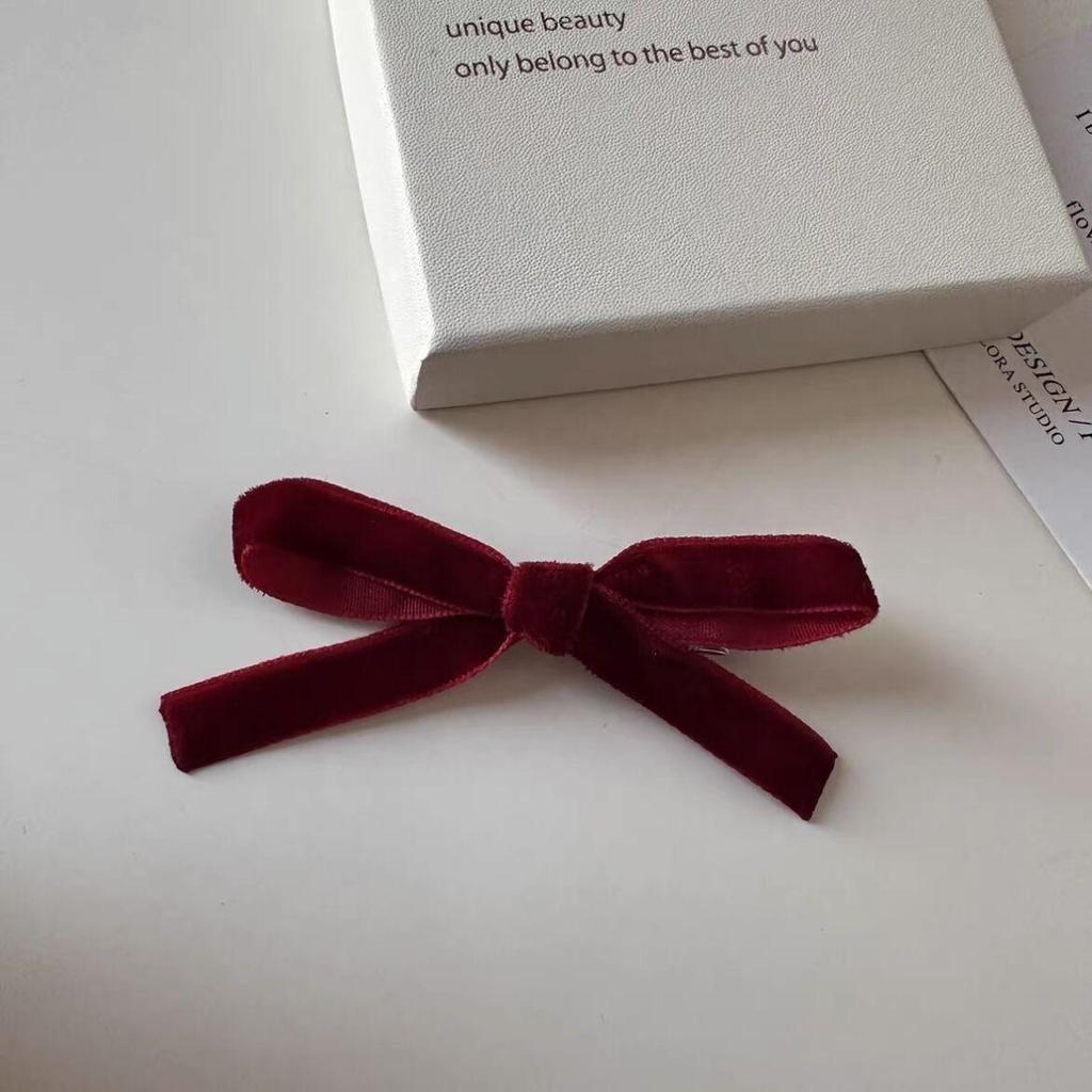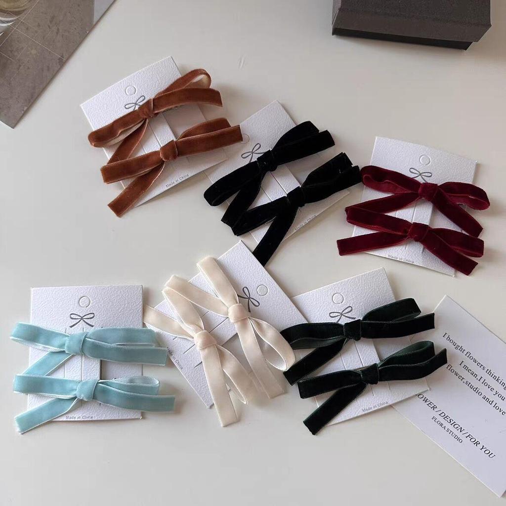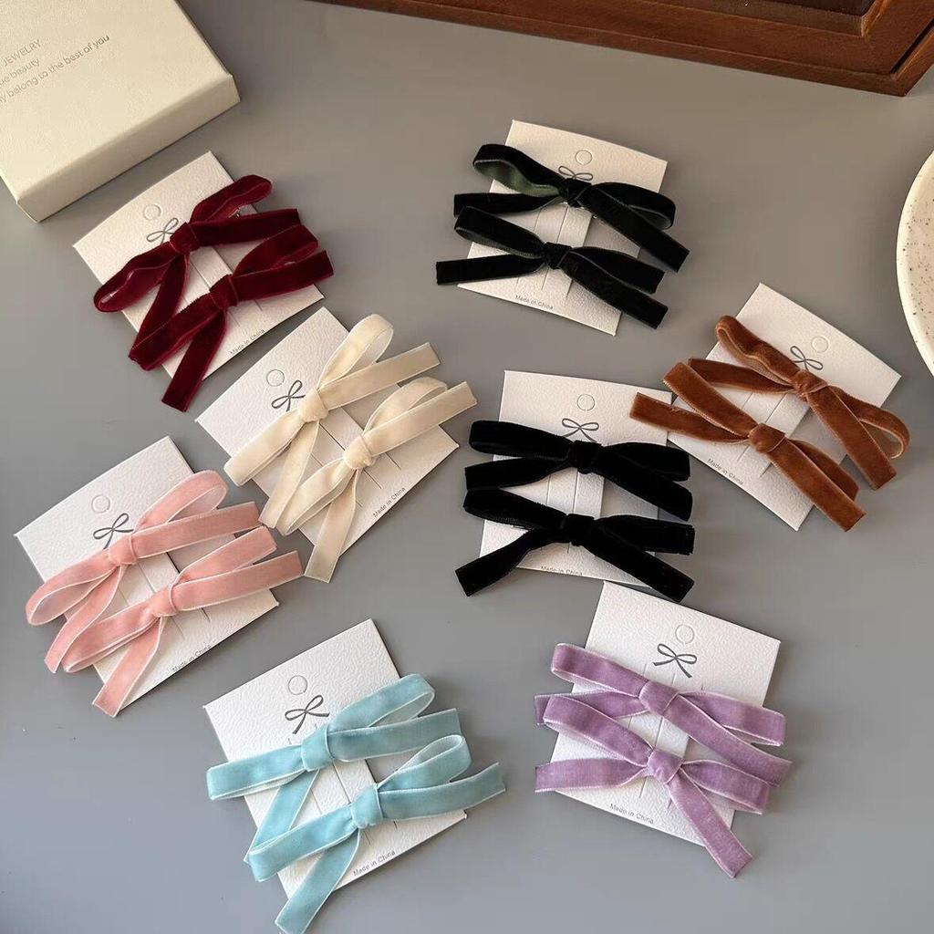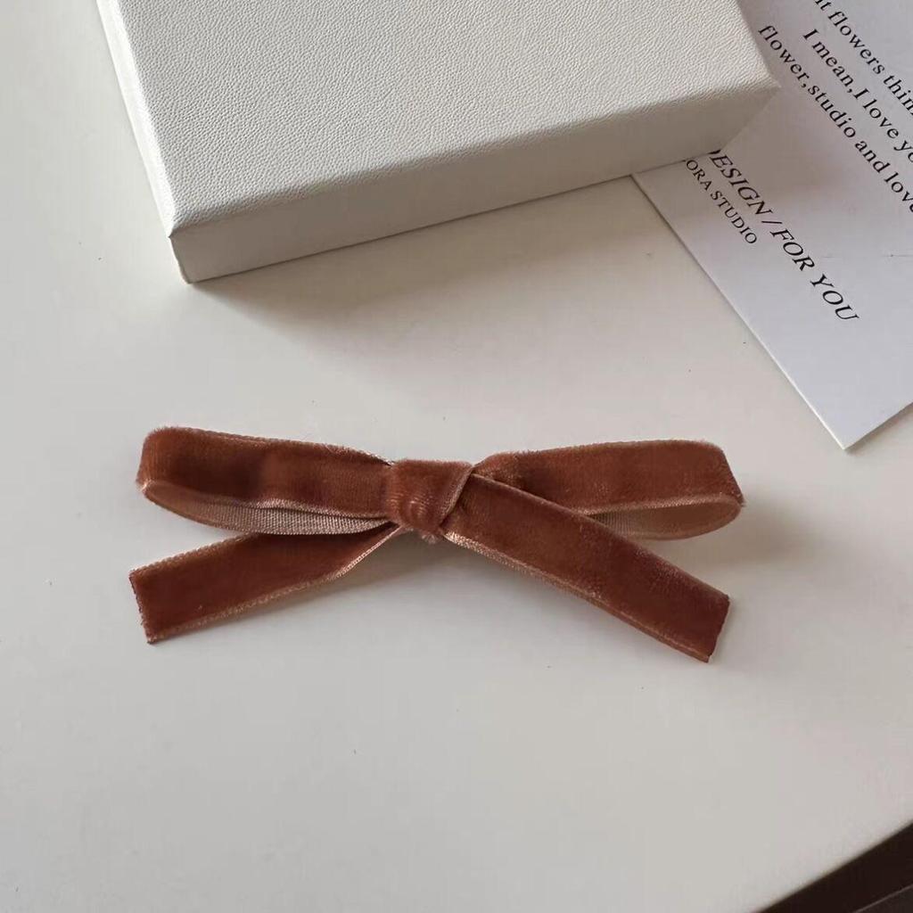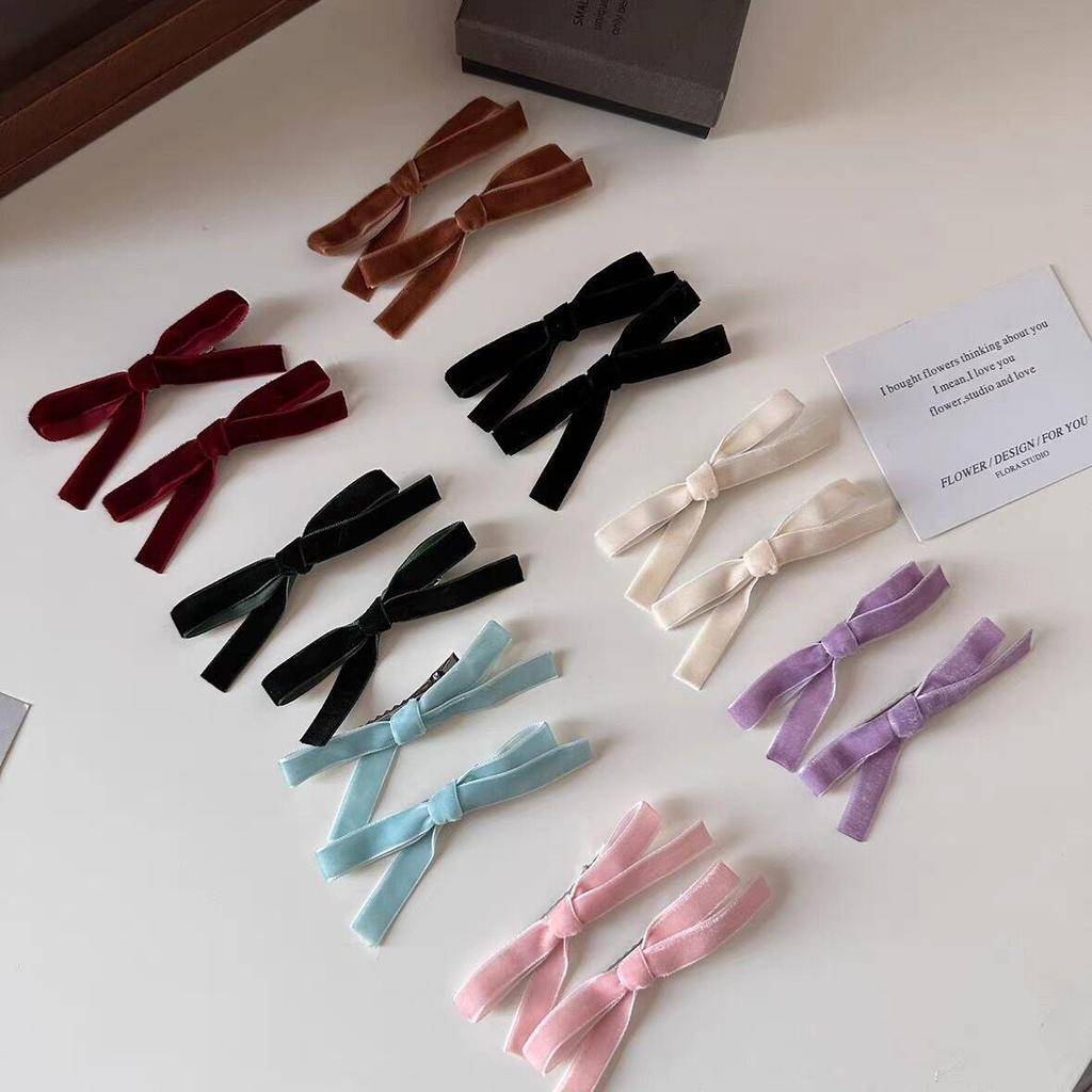 Заколка-бантик из бархата: Милая однотонная заколка-утиный нос в корейском стиле для детей - идеально подходит для осени и зимы