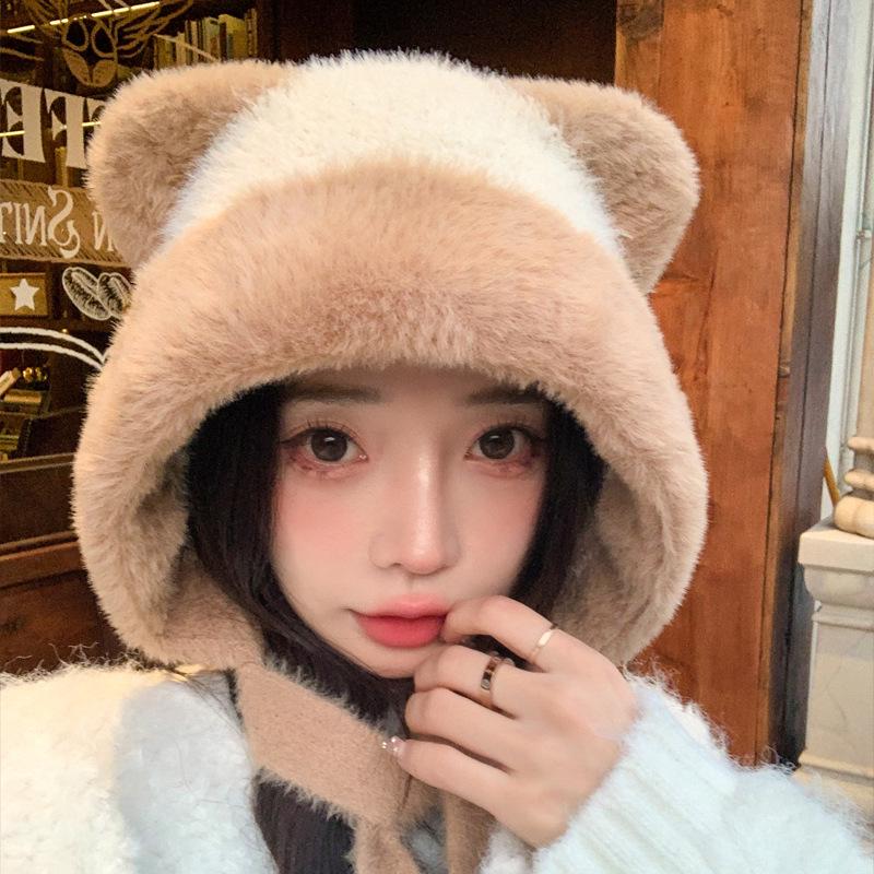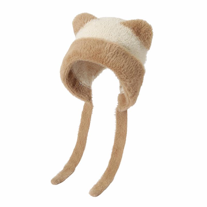 Женская плюшевая шапка-ушанка: Симпатичная, уютная, вязаная шерстяная зимняя шапка с толстой теплой защитой ушей.
