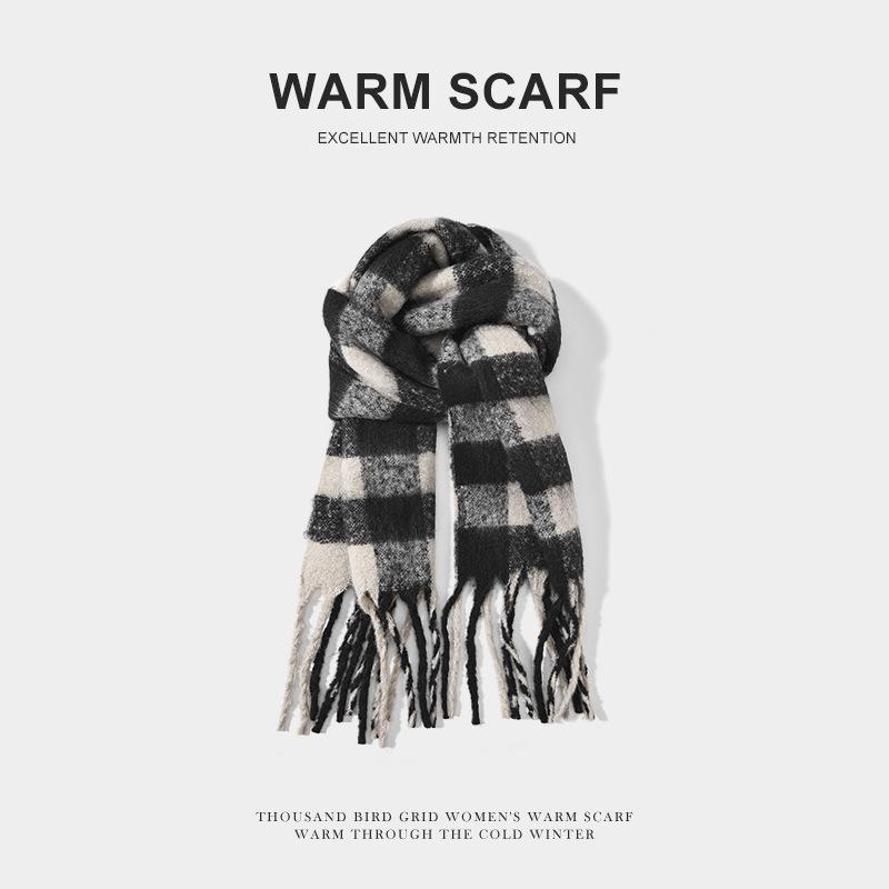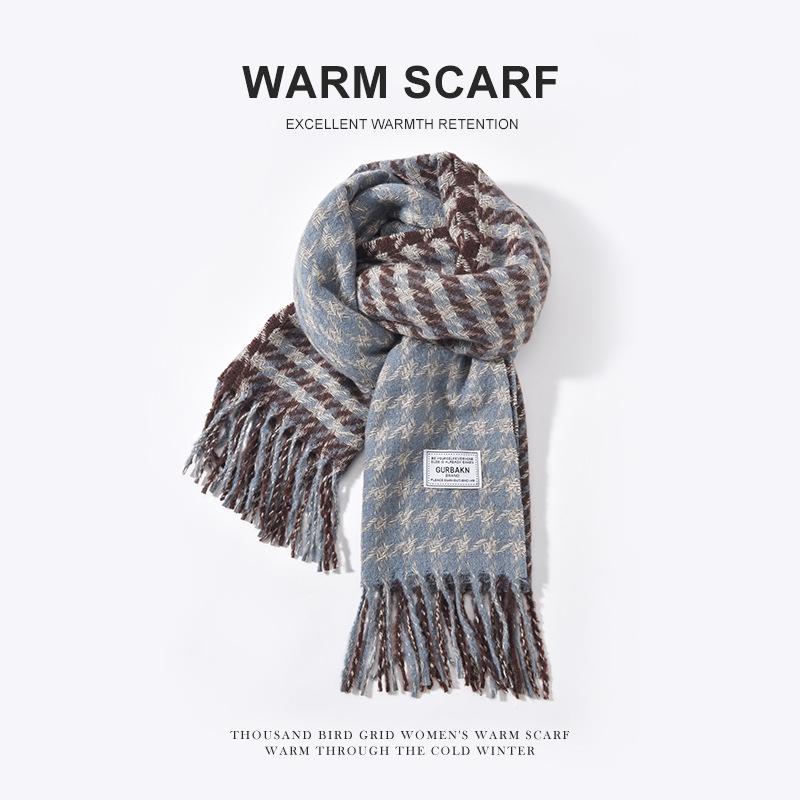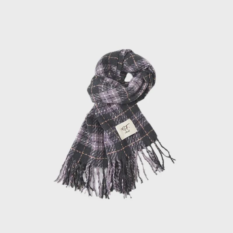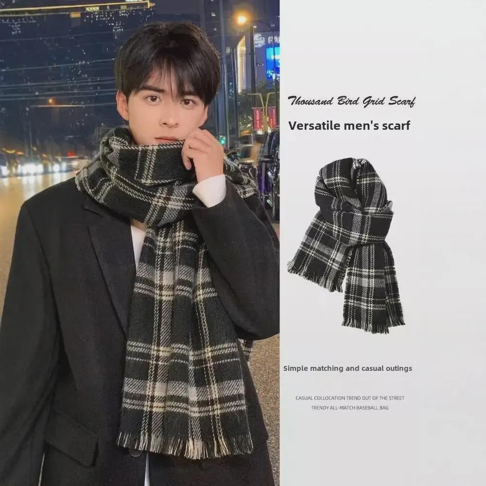 Мужской вязаный зимний шарф в корейском стиле с кисточками и клеткой