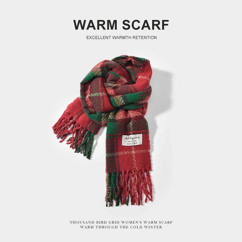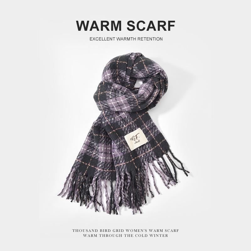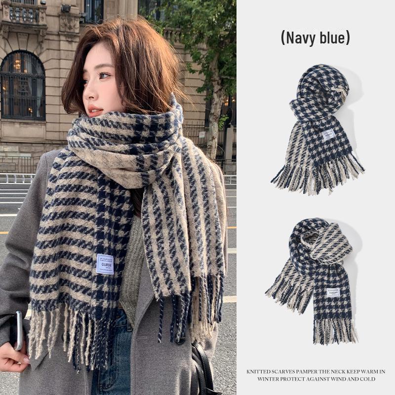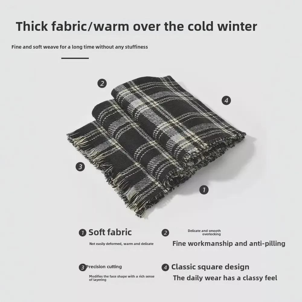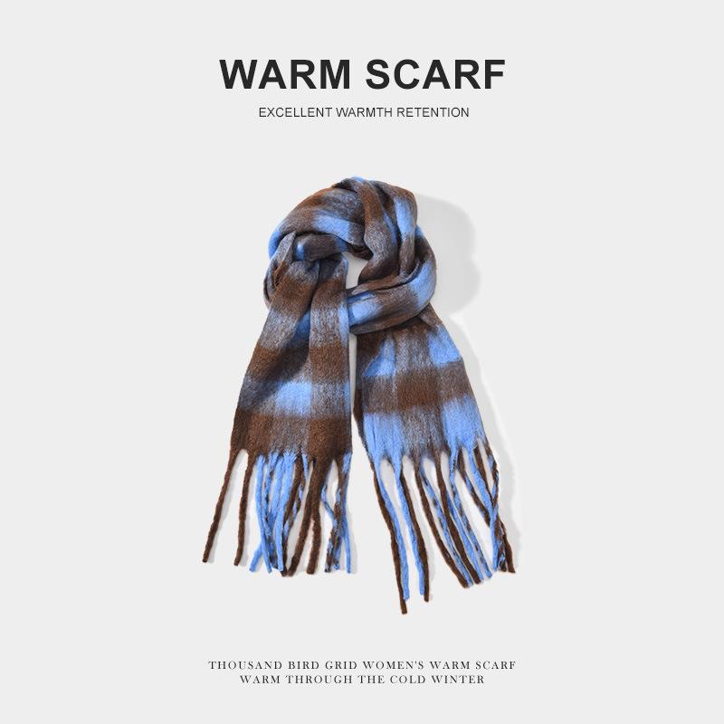 Мужской вязаный зимний шарф в корейском стиле с кисточками и клеткой