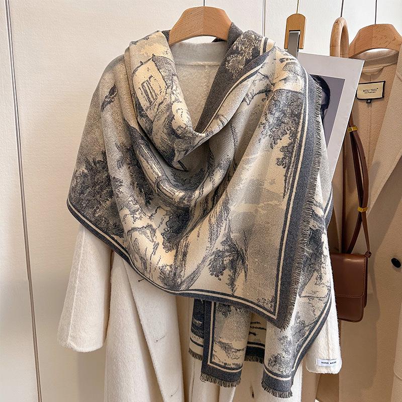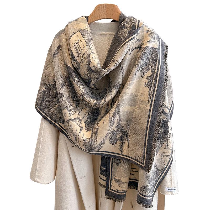 Европейский ретро-шарф с имитацией кашемира, выполненный в технике масляной живописи - элегантный, теплый, модный на осень и зиму