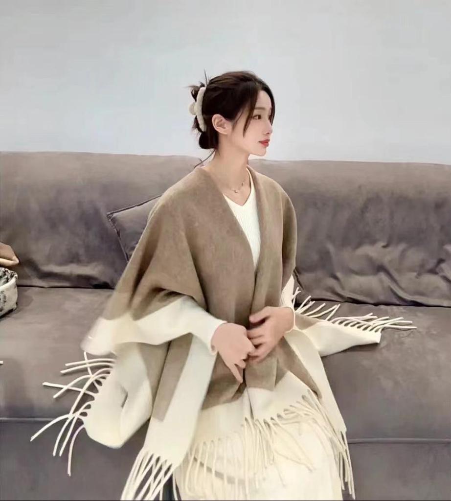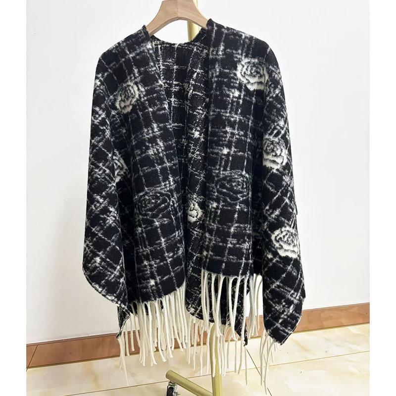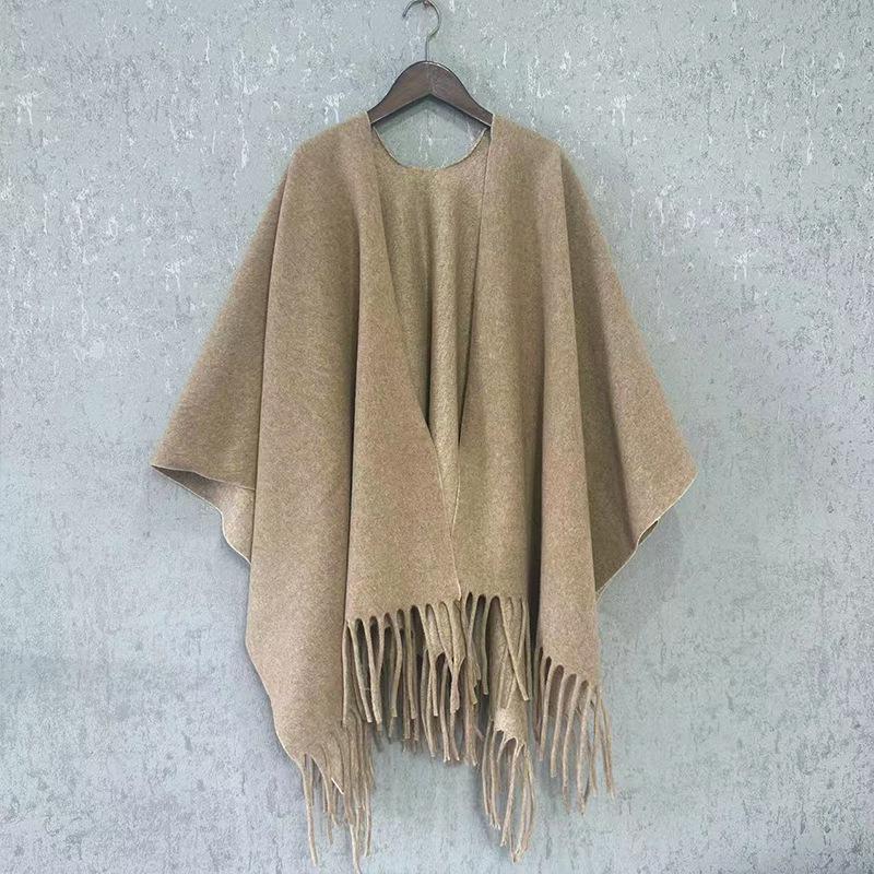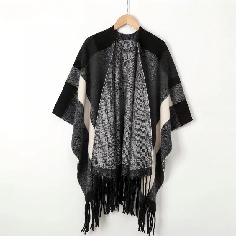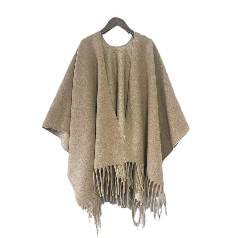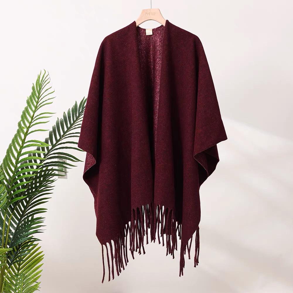 Женская шерстяная шаль с кисточками: Стильная универсальная накидка на осень/зиму