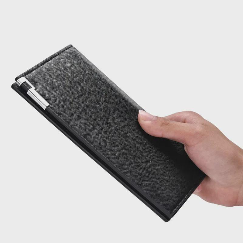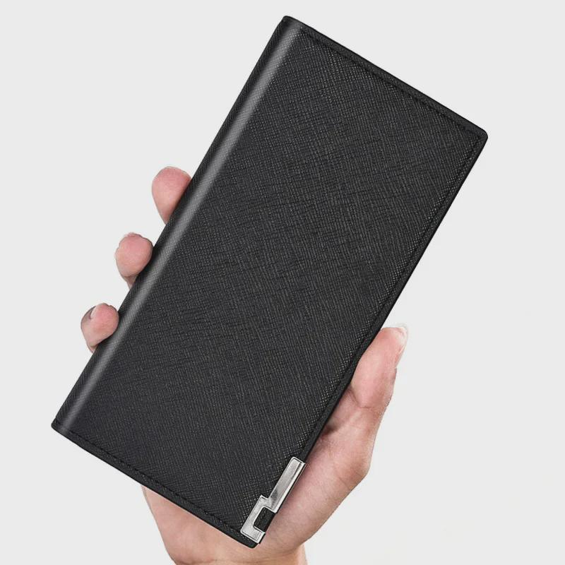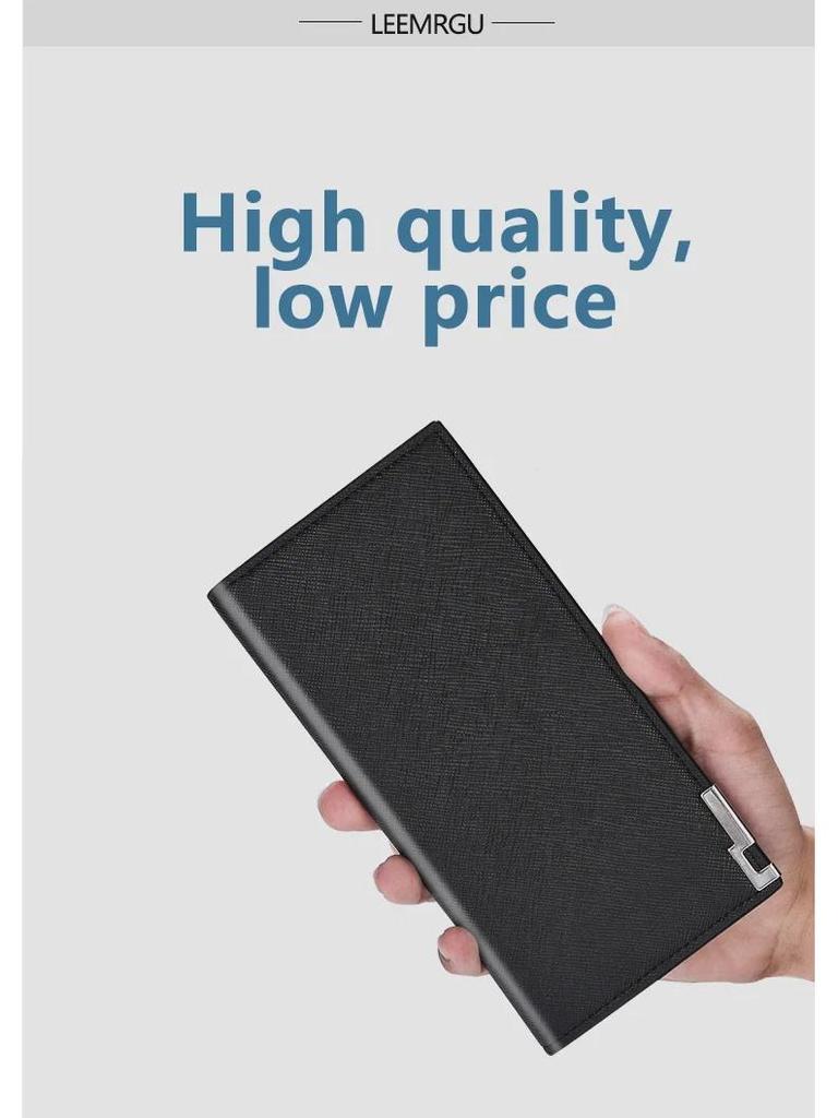 Мужской мягкий кожаный длинный клатч-кошелек с крестообразным узором