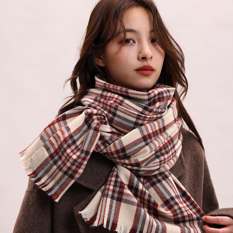 Женский корейский вязаный шарф в красную клетку 2024: Теплая, высококачественная толстая шаль на осень/зиму