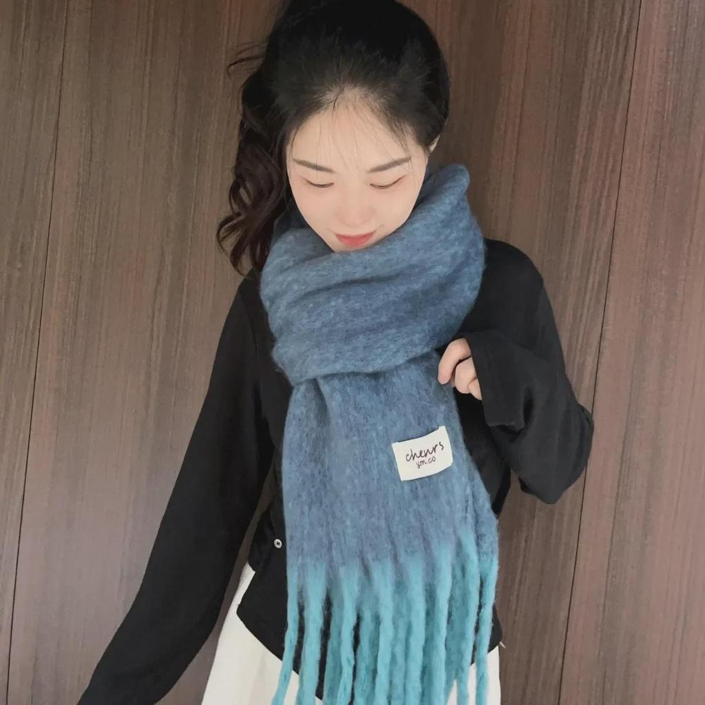 Women's Double-Sided Cashmere-Feel Winter Scarf: High-End, Warm, Tassel Shawl in Versatile Korean Style