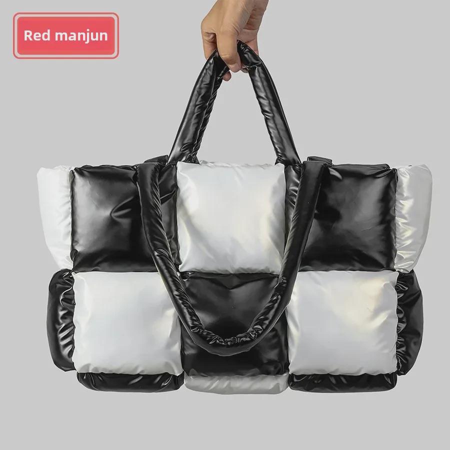 Женская легкая черно-белая клетчатая сумка-тоут – мягкая, пуховая сумка через плечо — купить товар онлайн с бесплатной доставкой по всему миру!