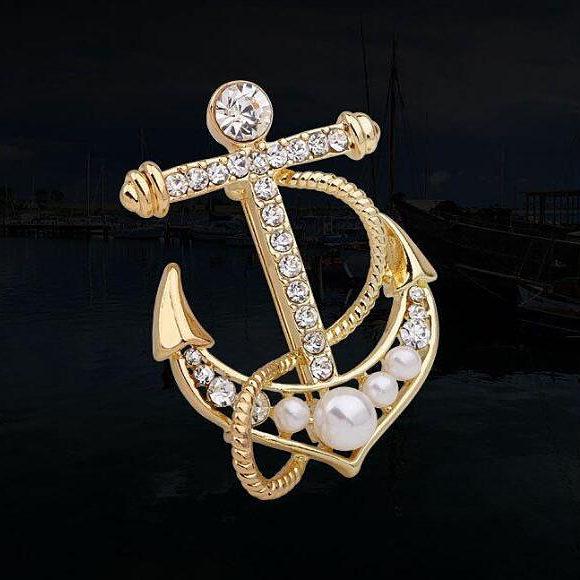 Элегантная брошь-заколка для галстука в виде хрустального золотого якоря, аксессуар для мужского костюма — купить товар онлайн с бесплатной доставкой по всему миру!