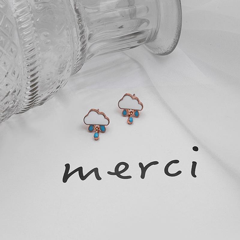 Серьги-облака в виде капель дождя в японском и корейском стиле — милый и креативный дизайн