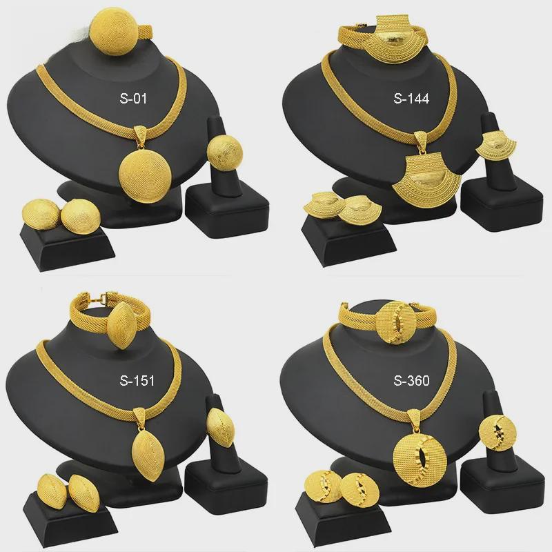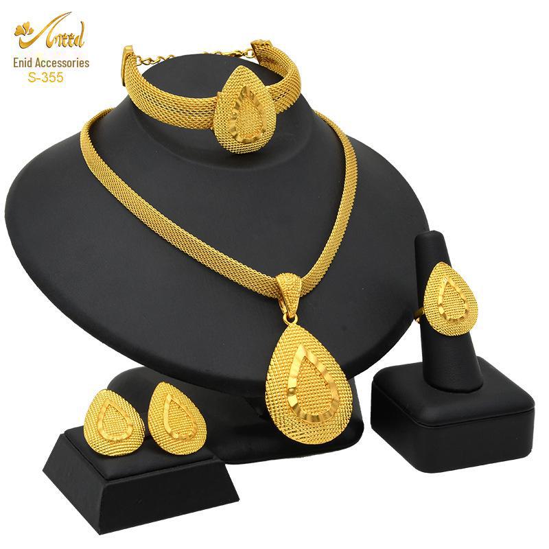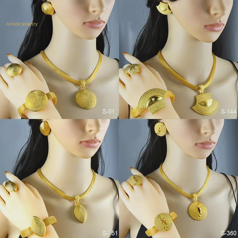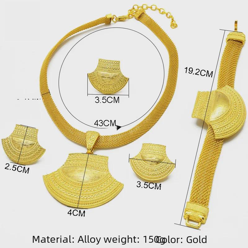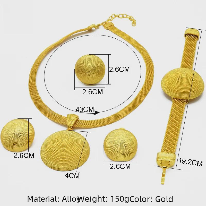 Комплект свадебных украшений из Дубая с позолотой 24 карата: Ожерелье, серьги, кольцо и браслет