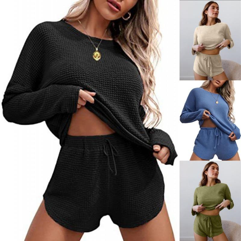 Осенние и зимние пижамы Повседневные шорты с длинными рукавами и широкими штанинами Удобная домашняя одежда Комплект из двух предметов Одежда для сна Одежда для отдыха