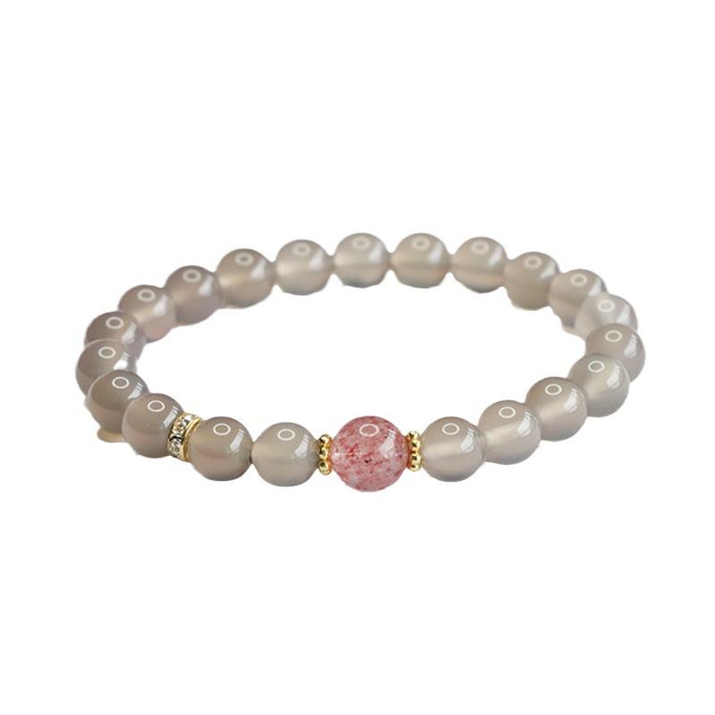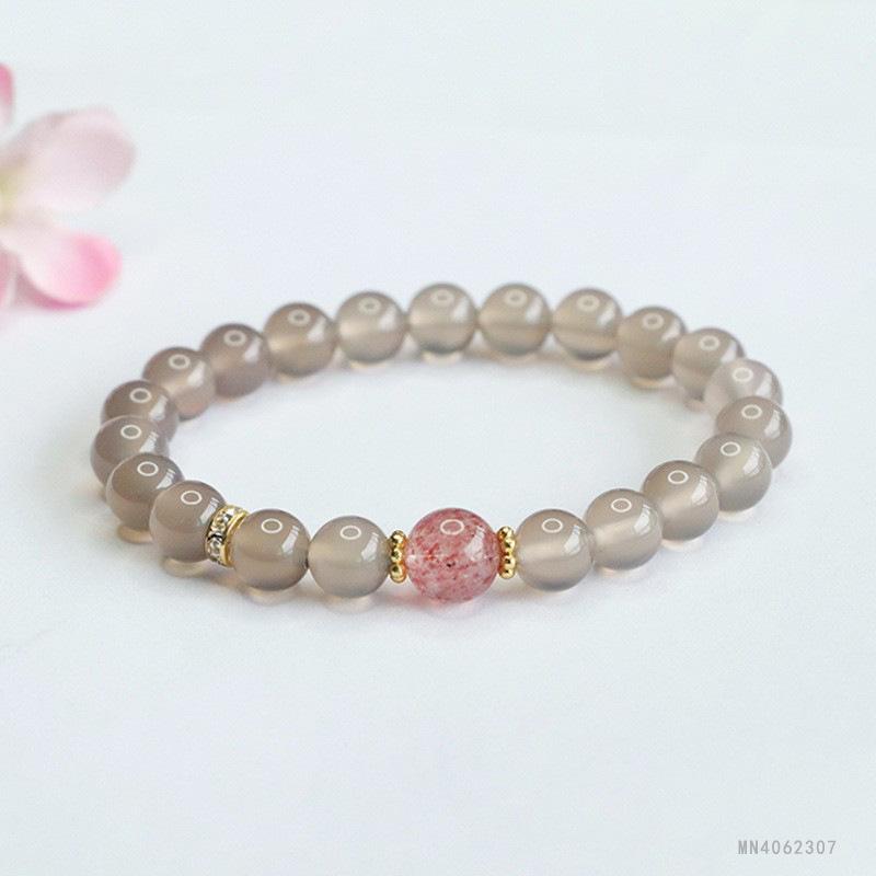 Chalcedony ~8mm, Strawberry Crystal ~9mm
