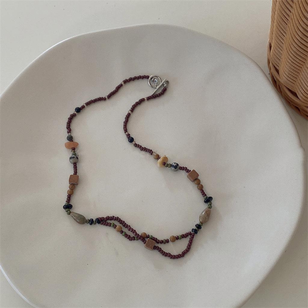 Дизайн ретро-коричневой ниши: Нестандартное двухслойное ожерелье из бисера с натуральными камнями