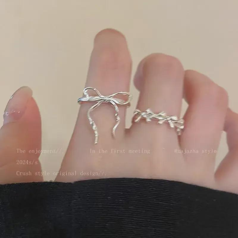 Регулируемое серебряное кольцо-бантик для женщин - Минималистский летний стиль