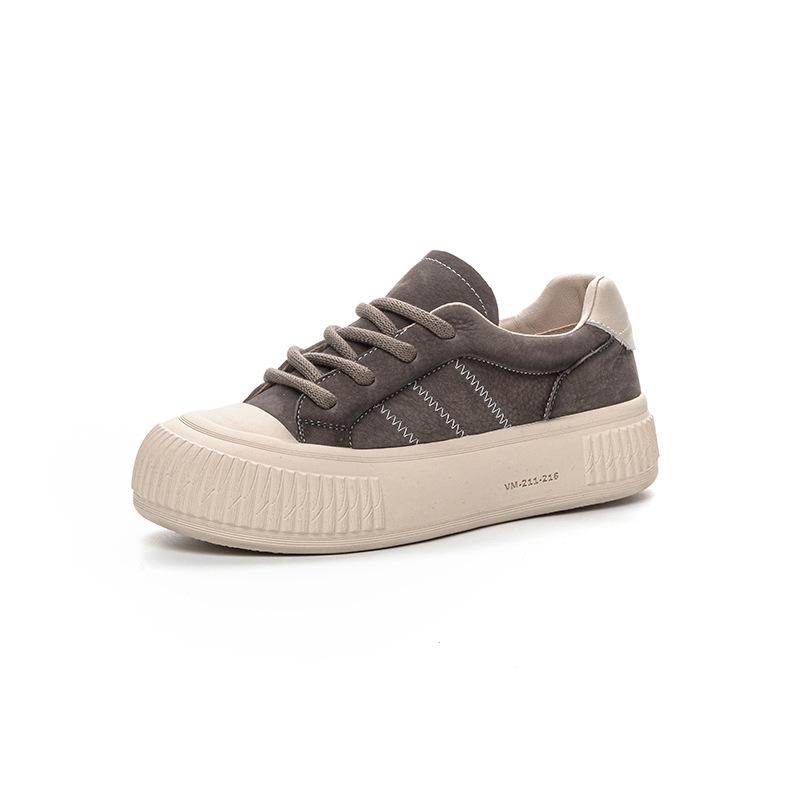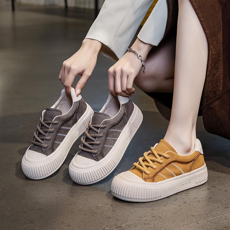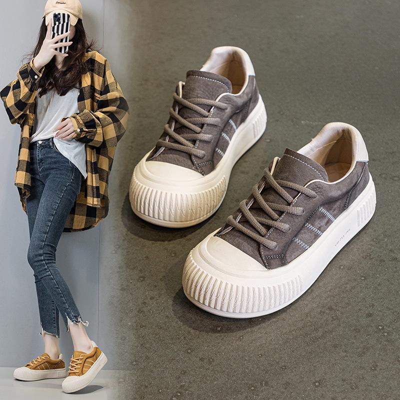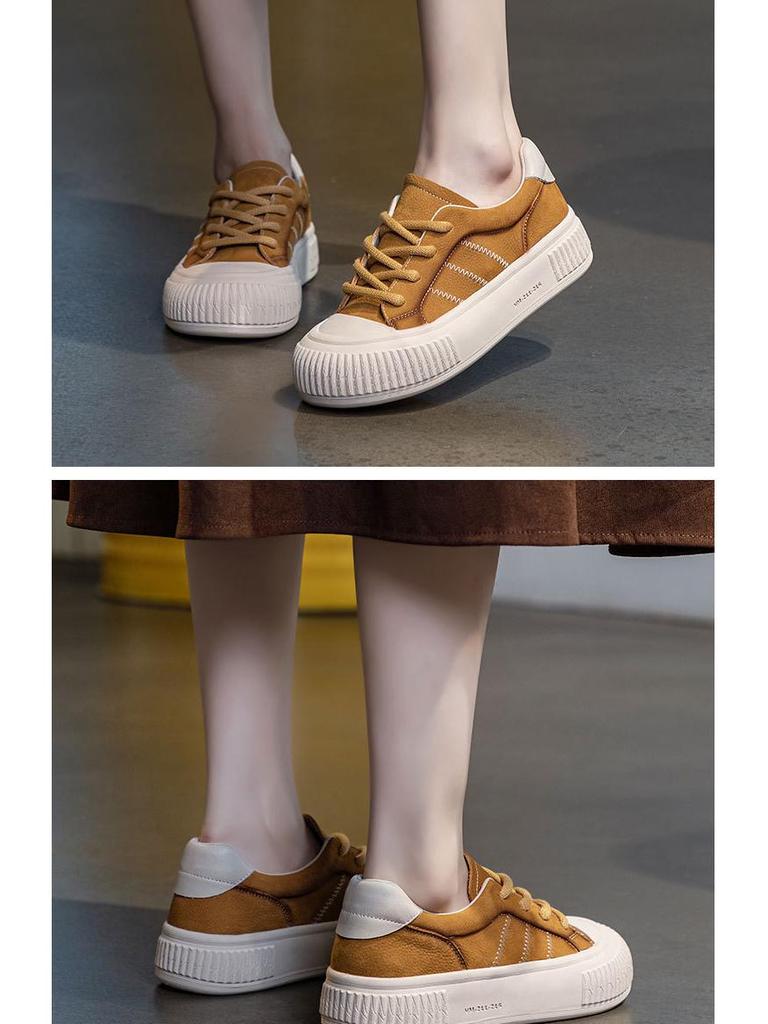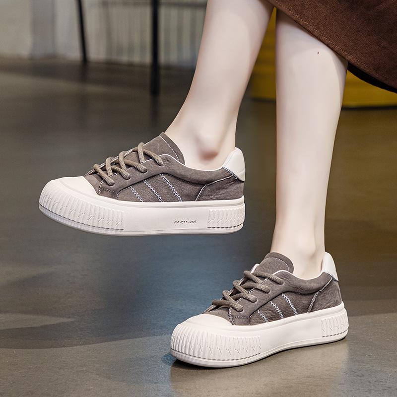 Осенние белые кроссовки из коровьей кожи на шнуровке 2024 года: Повседневная обувь на толстой подошве для студентов и медсестер