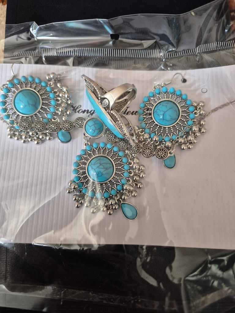 Комплект из серег, колец и ожерелья в стиле ретро с этнической бирюзой в богемном стиле для женщин