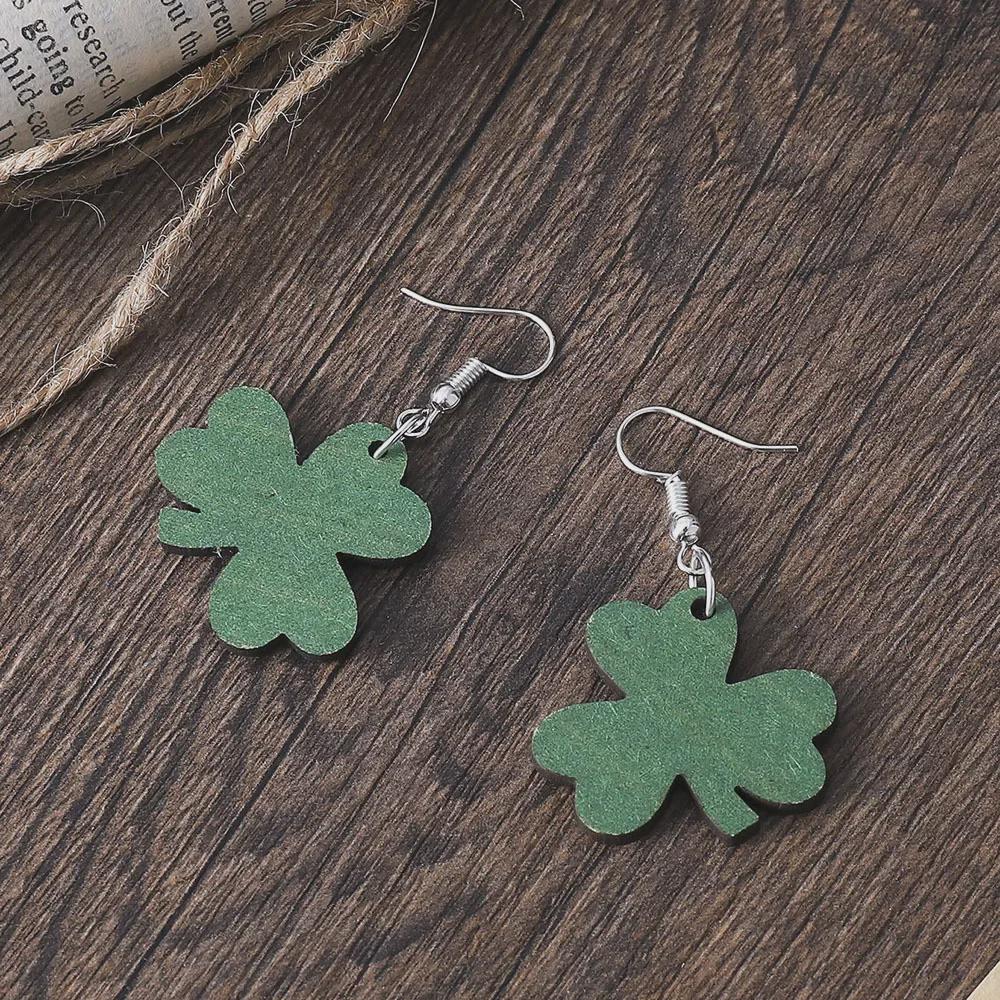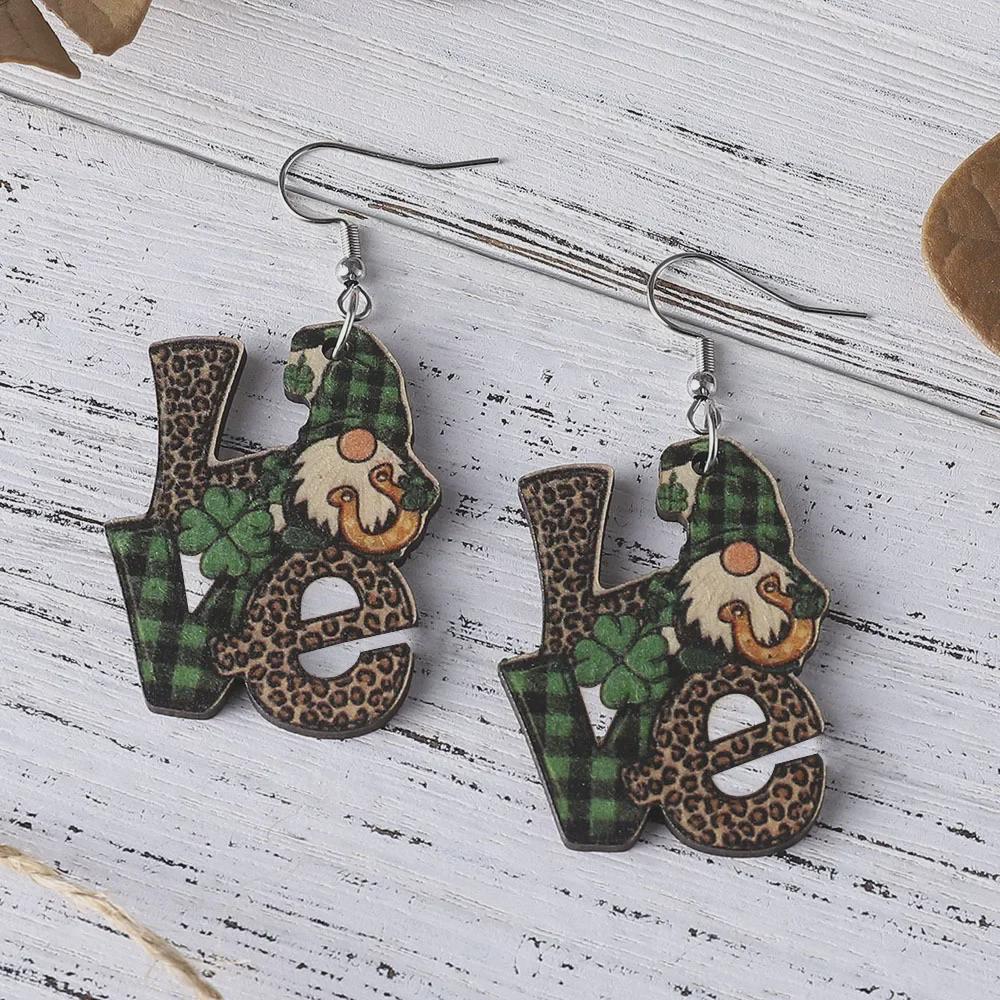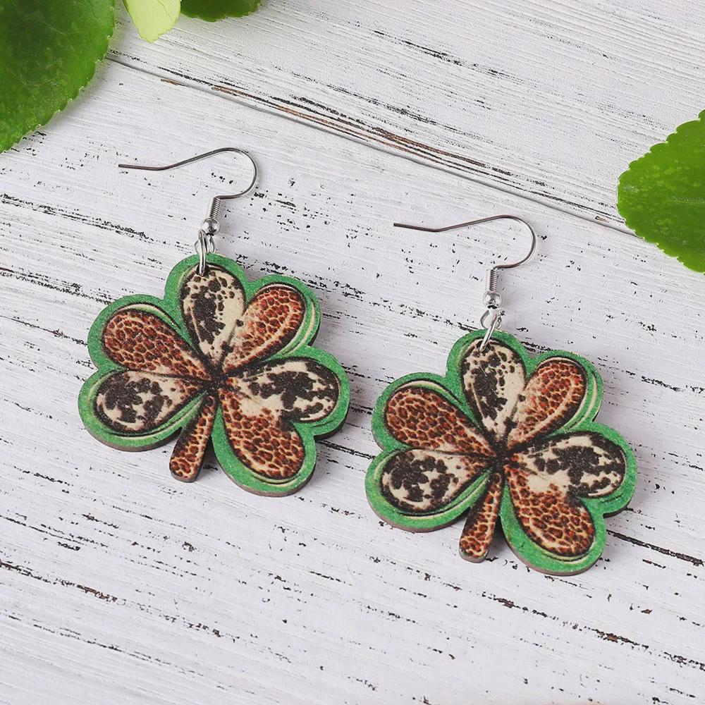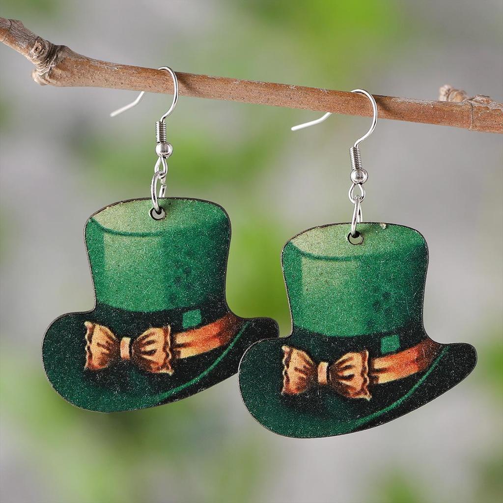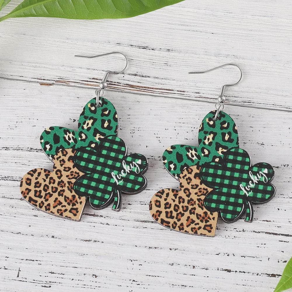 Улица. Деревянные серьги с подвеской в виде зеленого котенка и клевера ко Дню Святого Патрика