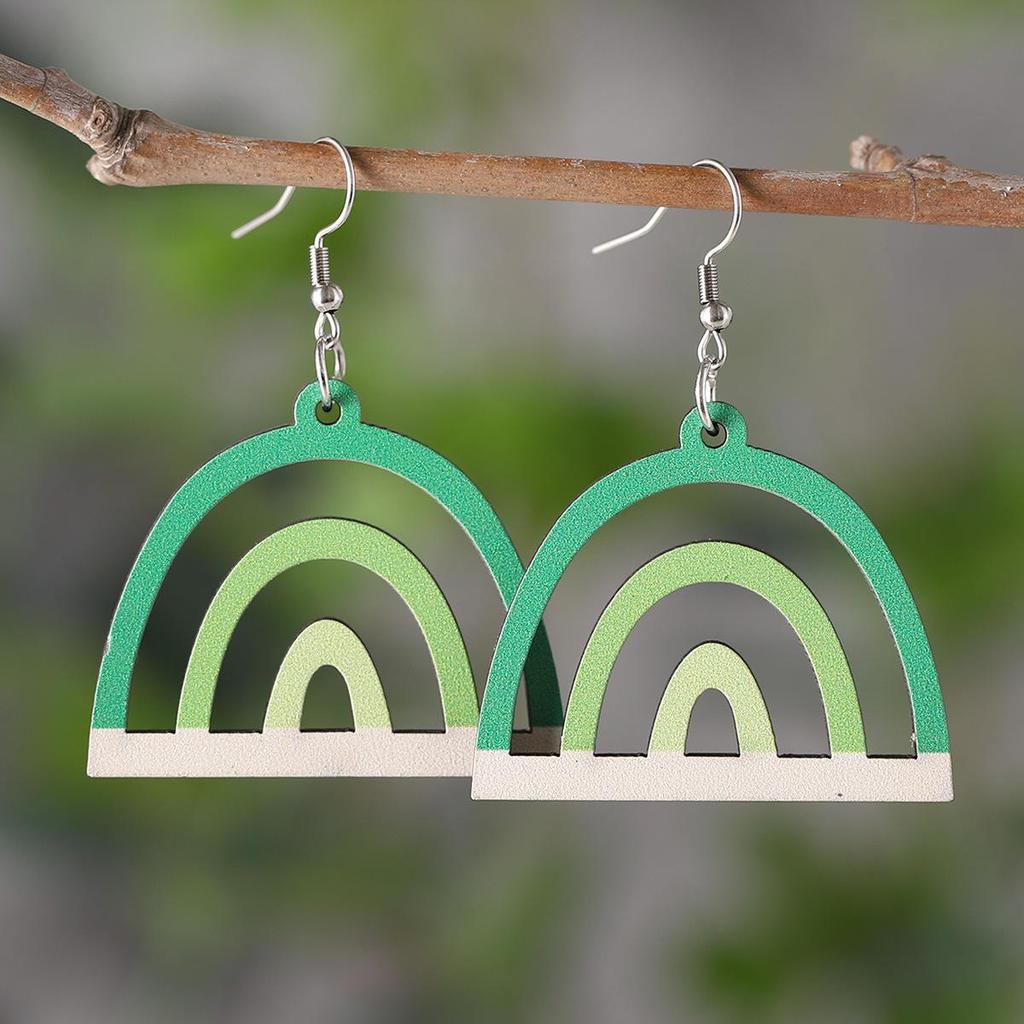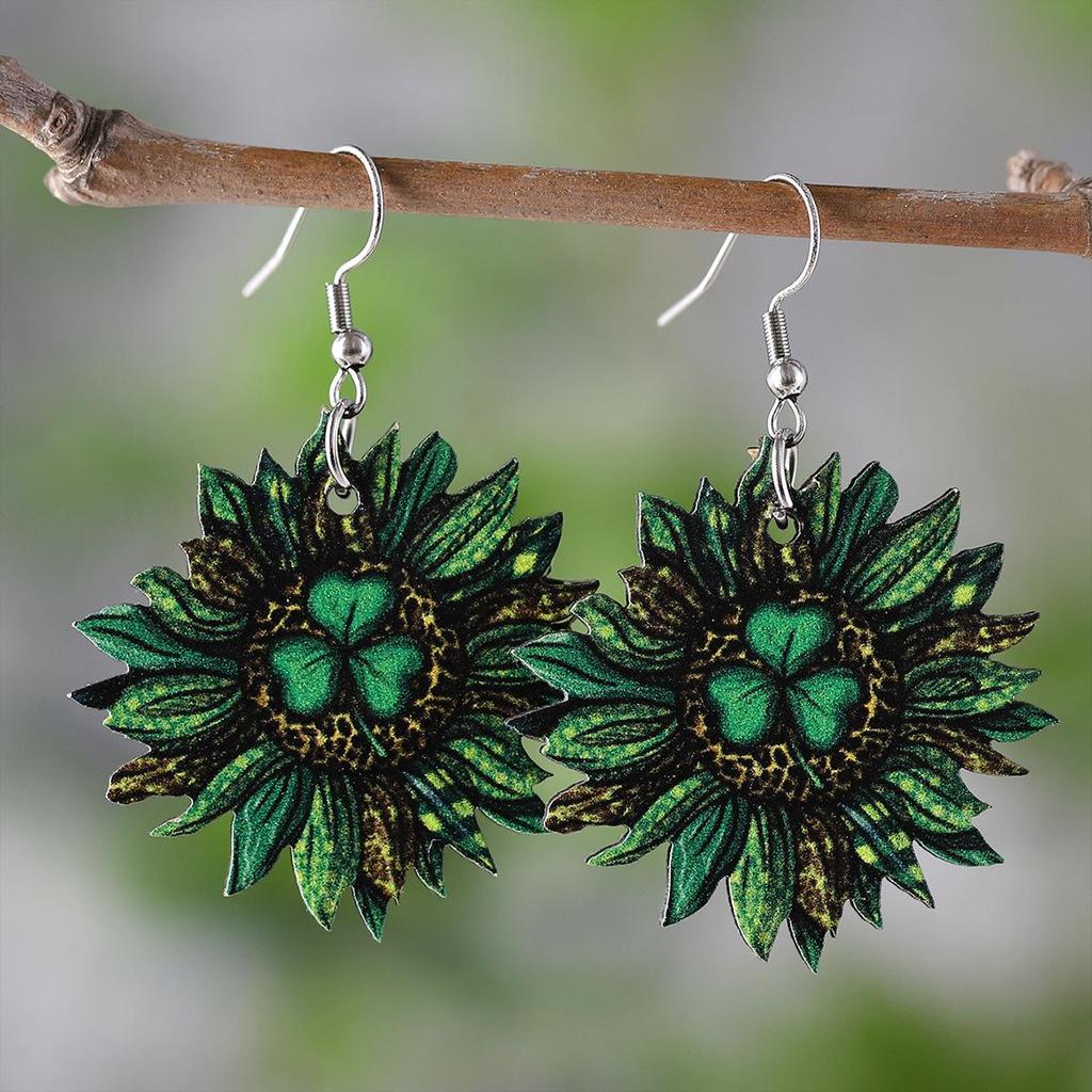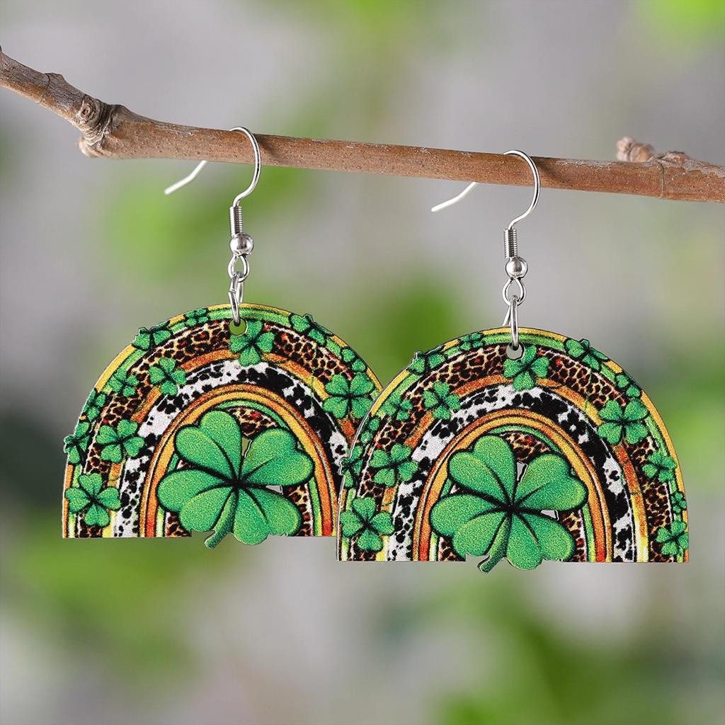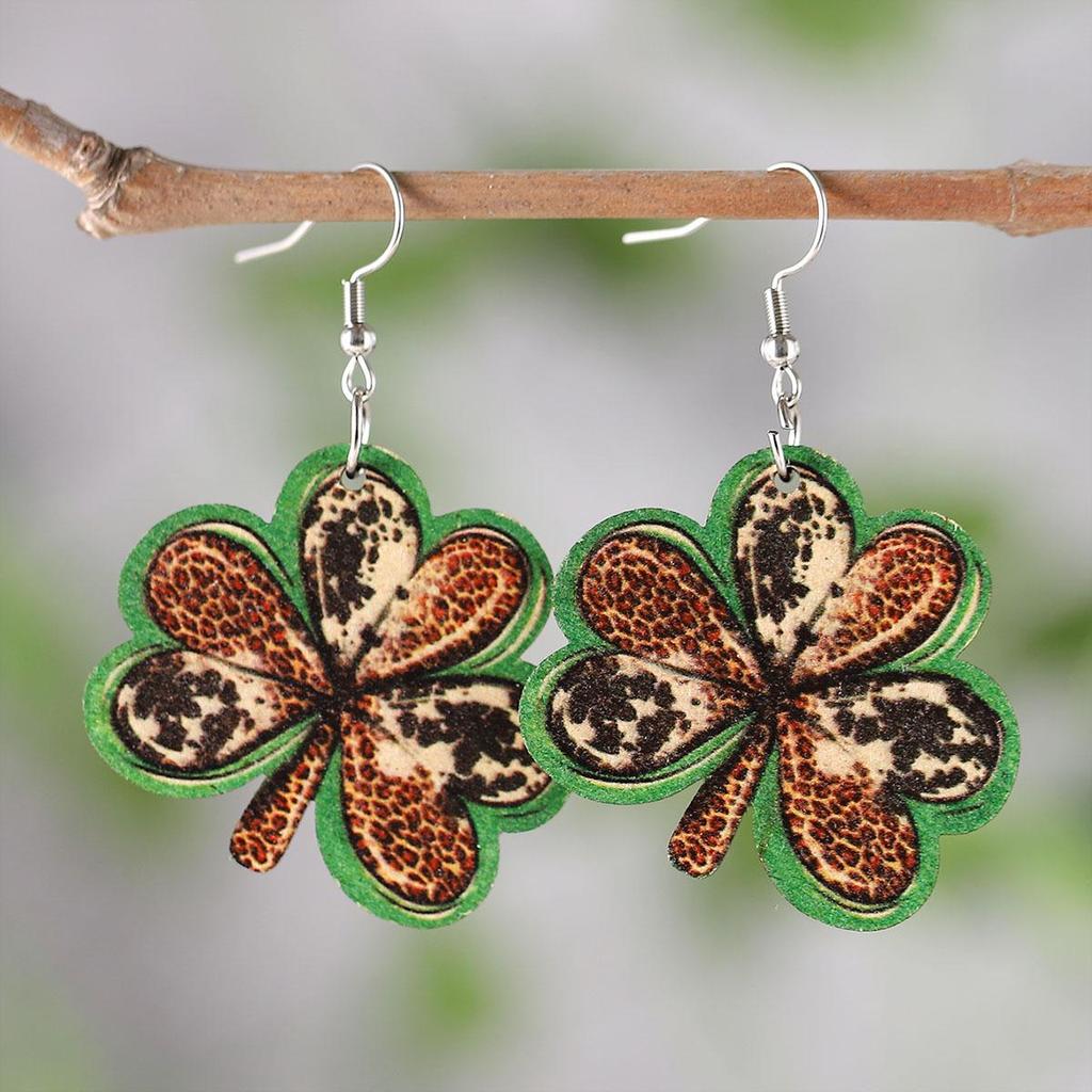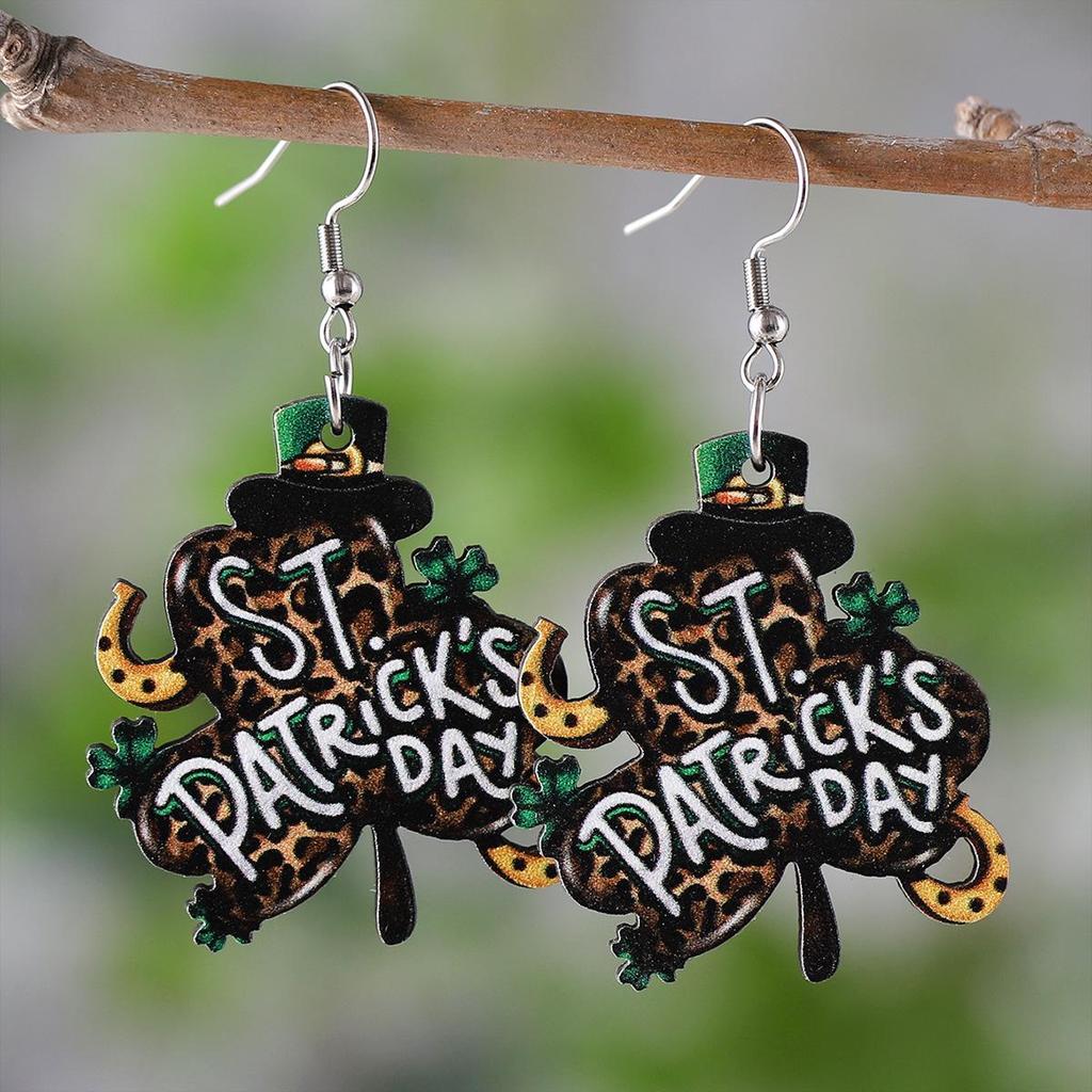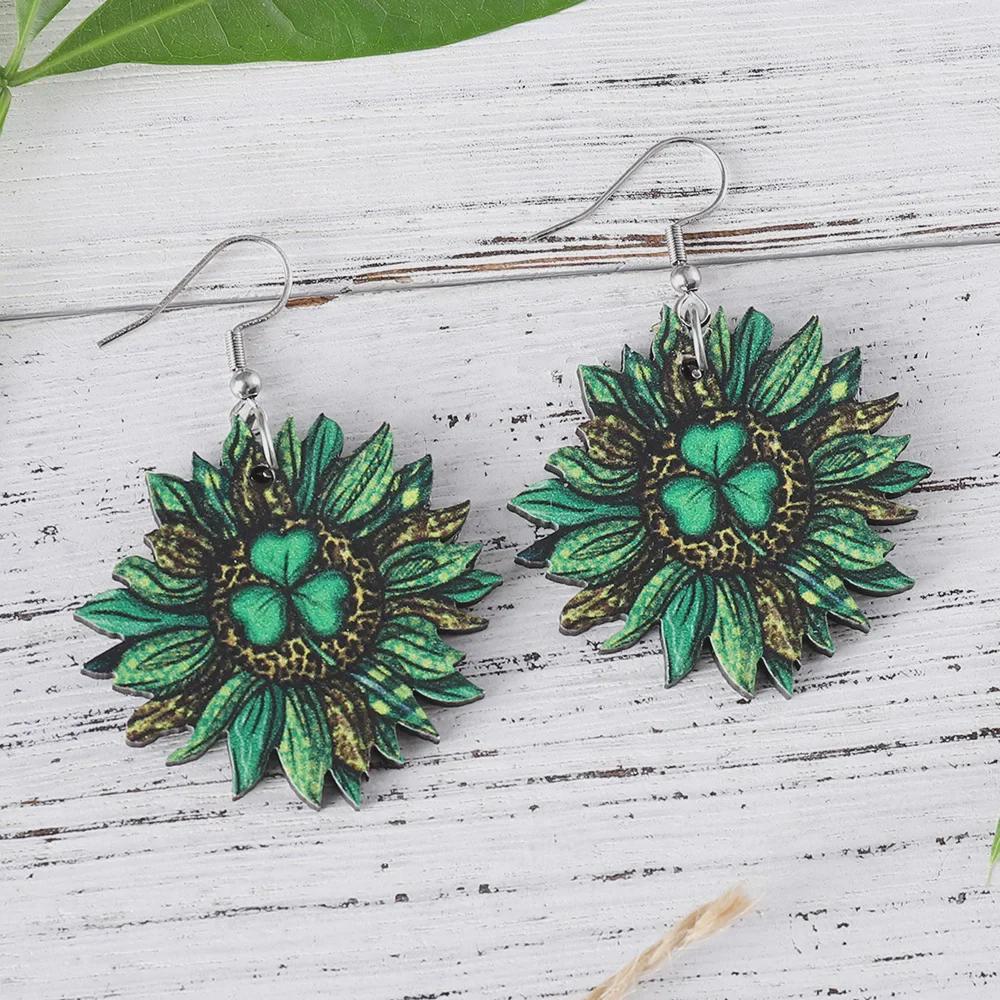 Улица. Деревянные серьги с подвеской в виде зеленого котенка и клевера ко Дню Святого Патрика