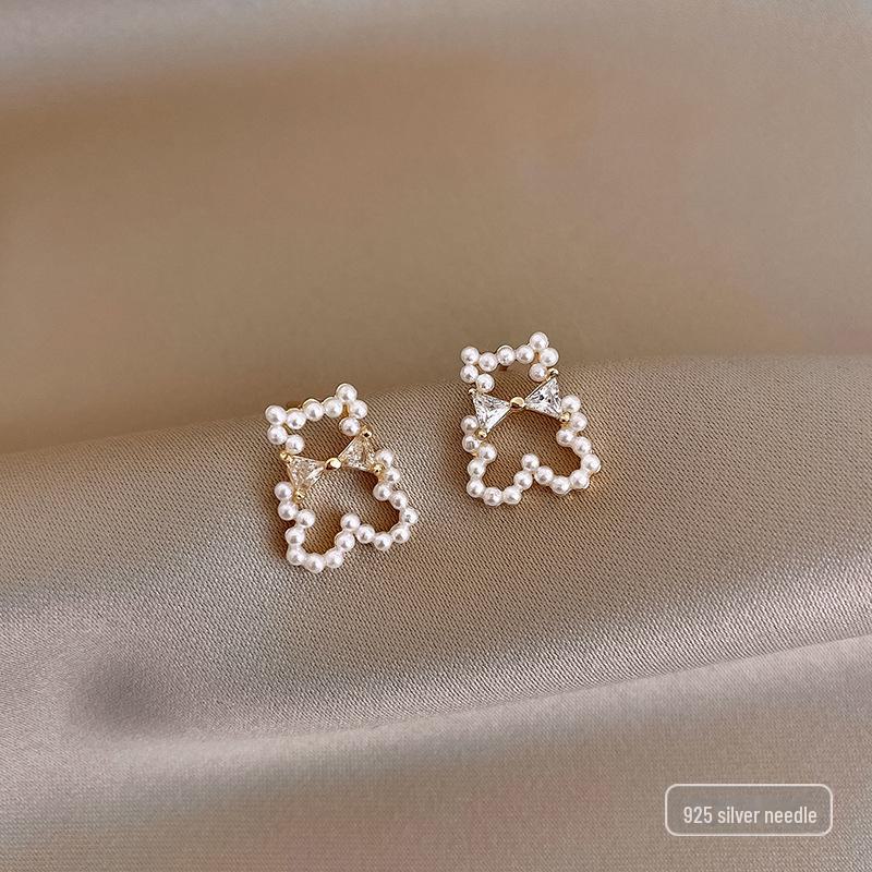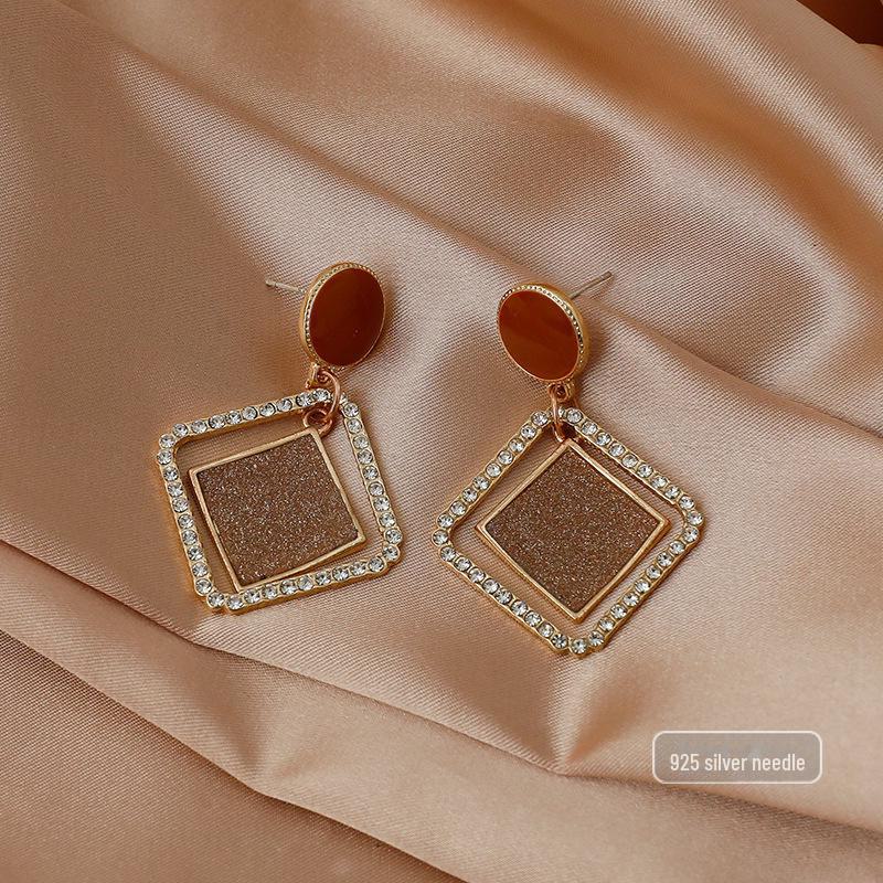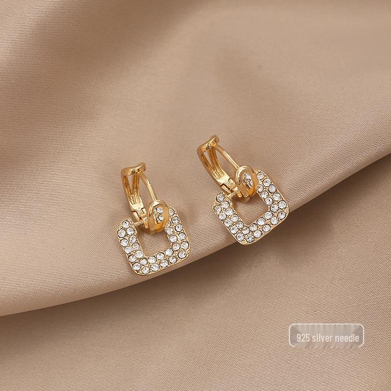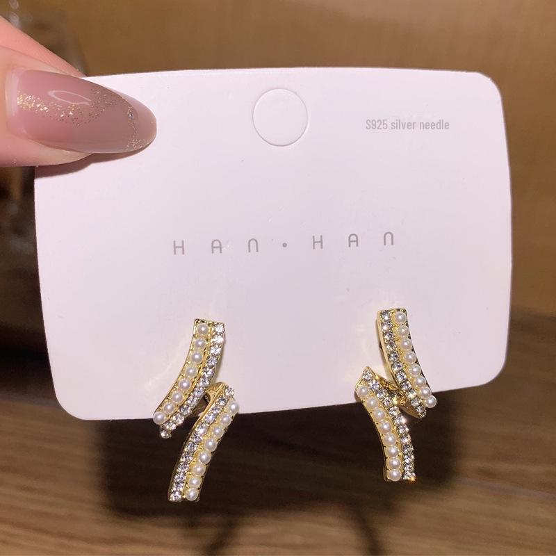 Серьги с жемчугом в стиле ретро с геометрическими бриллиантами для женщин — универсальные, тонкие, высококачественные, с серебряными иглами