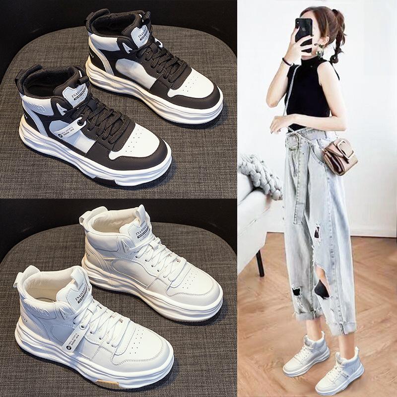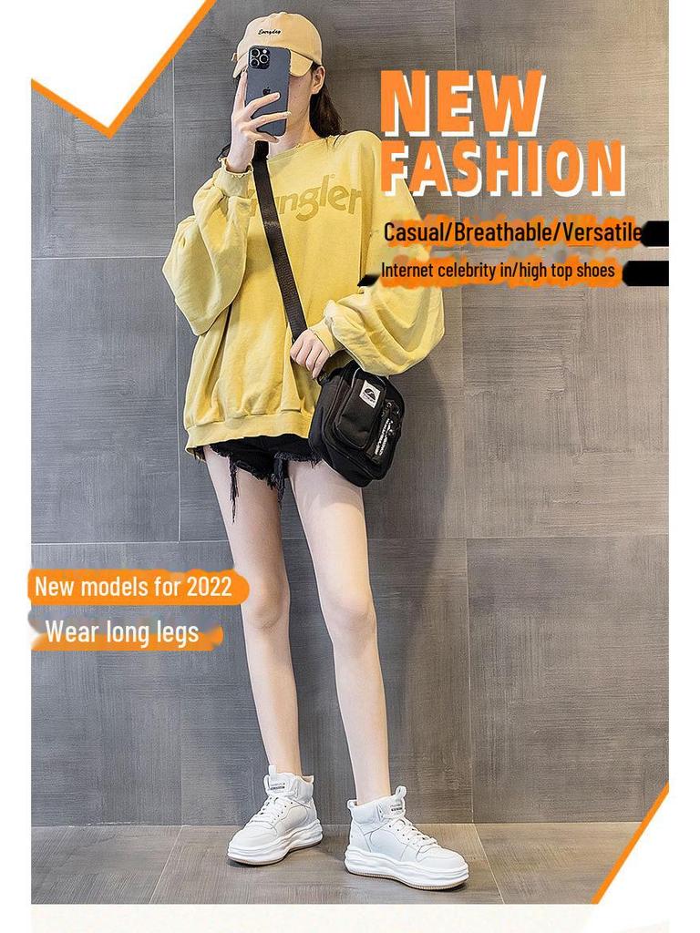 Женские высокие белые кроссовки на толстой подошве 2025 года — мягкий бархат, универсальный повседневный спортивный стиль для осени/зимы.