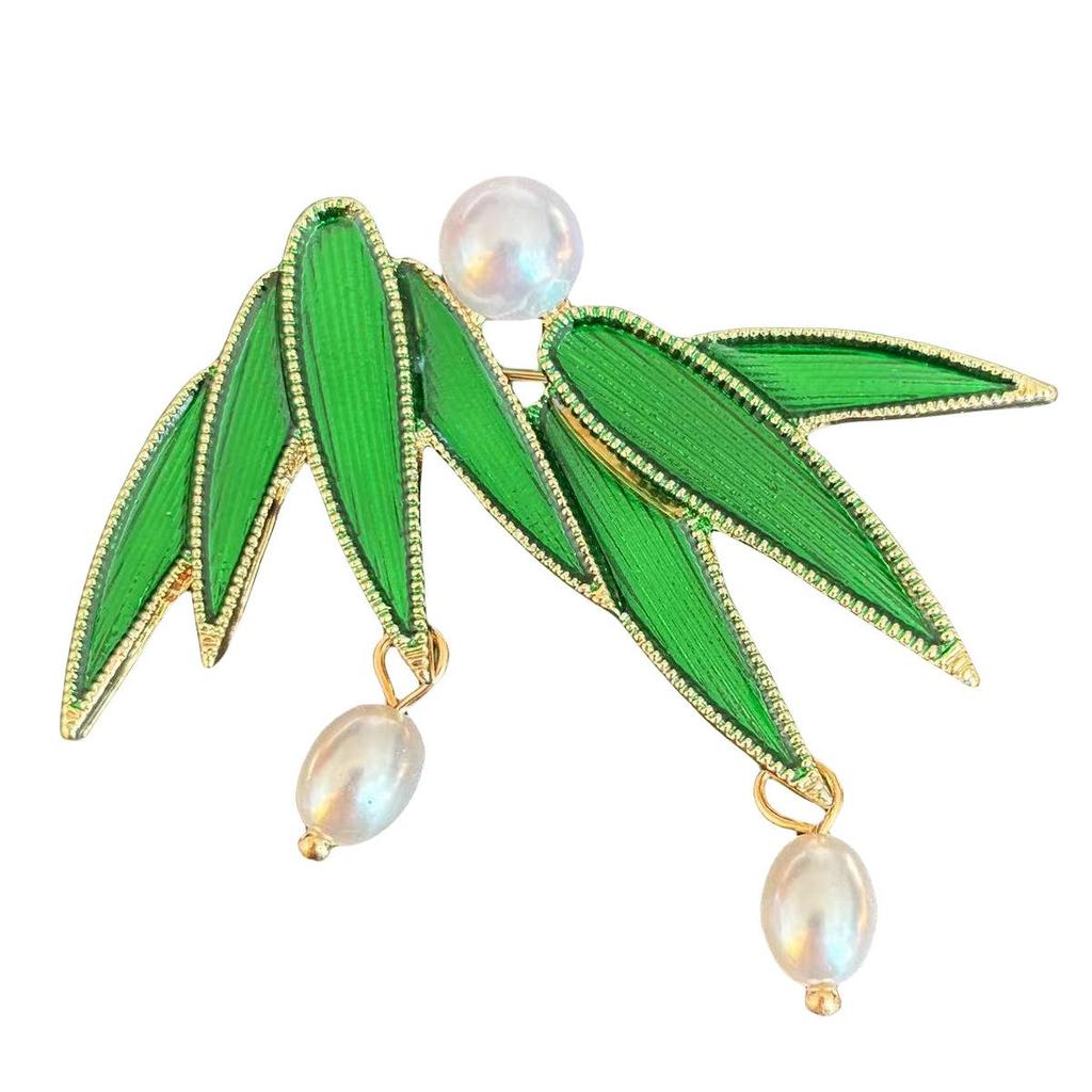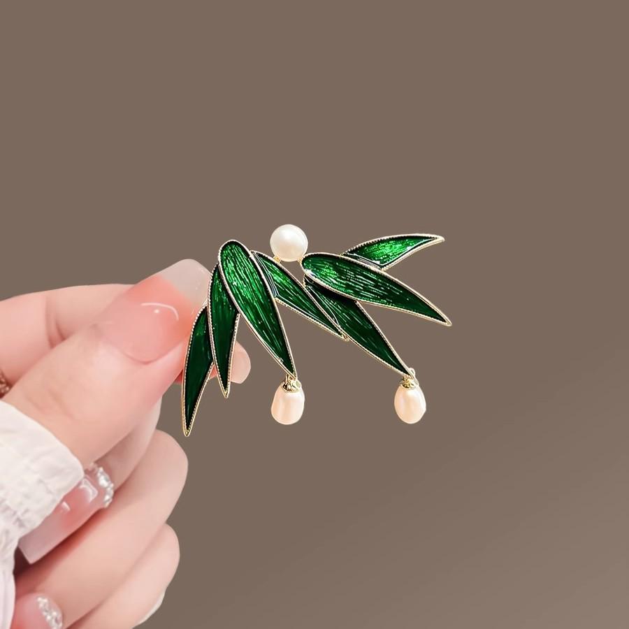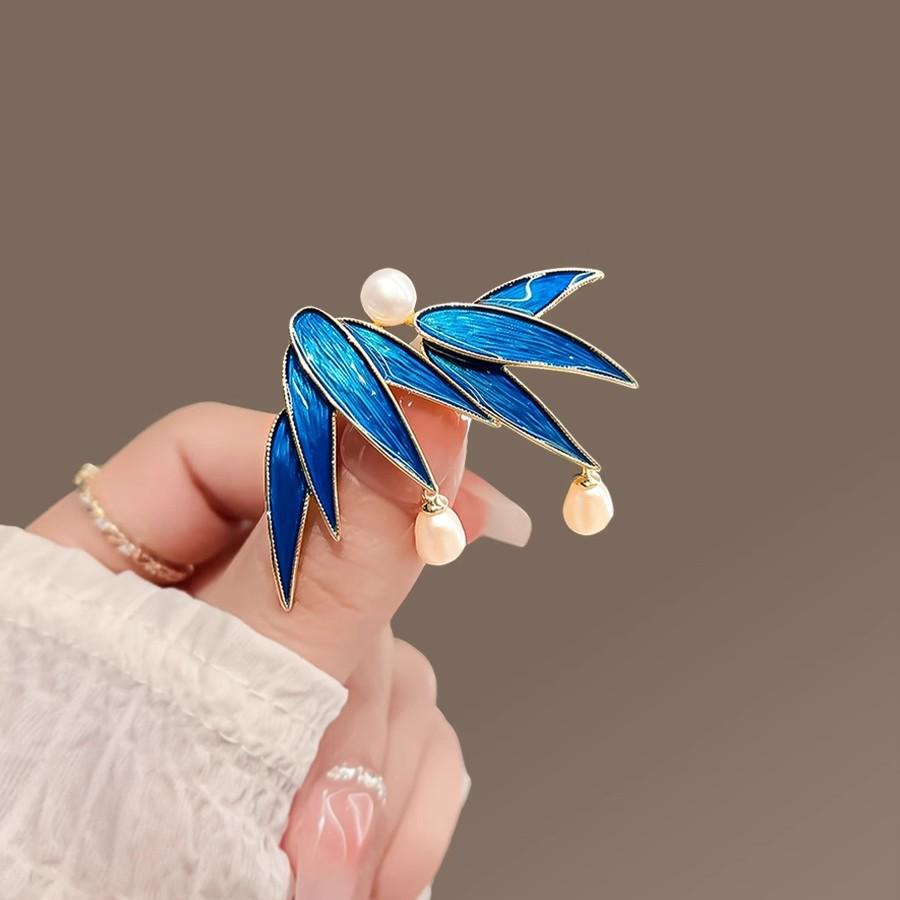 Юбилейная брошь «Утренняя роса» в виде бамбукового листа: Дизайн перьев синего павлина в китайском стиле