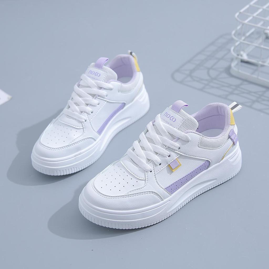 Дополните свой весенний гардероб этими повседневными кроссовками в корейском стиле, созданными специально для женщин.. Эти кроссовки, изготовленные из дышащей белой кожи, сочетают в себе стиль и комфорт.. Верхний материал из полиуретана обеспечивает прочность и элегантный вид, а резиновая подошва — надежное сцепление и гибкость.. Эти универсальные кроссовки оснащены полиуретановой стелькой для дополнительного комфорта, что делает их идеальными для повседневной носки.