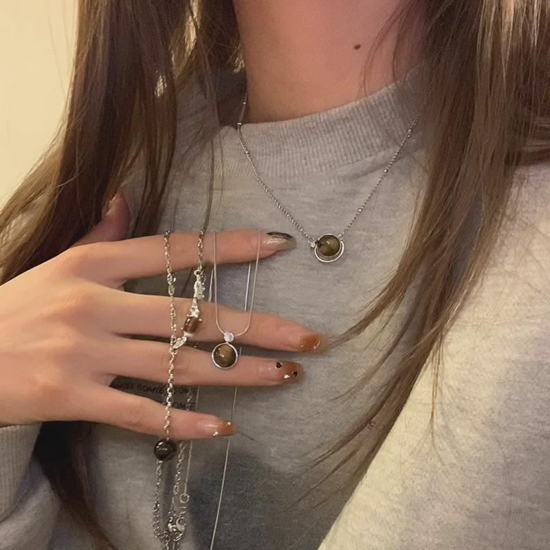 Элегантное женское ожерелье из бисера тигровый глаз 2024 года: Высококачественная, холодная, универсальная цепь для ключицы