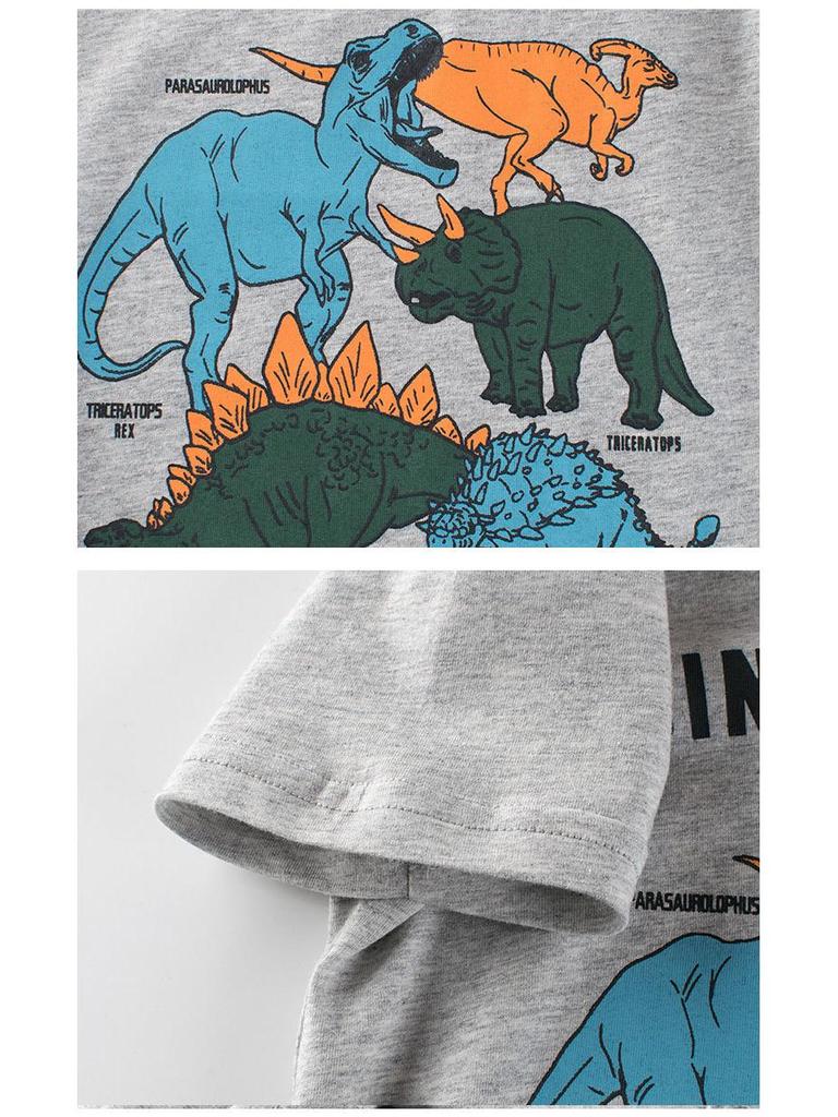 Футболка с рисунком динозавра для мальчиков 27kids Korean Summer 2025 - с короткими рукавами