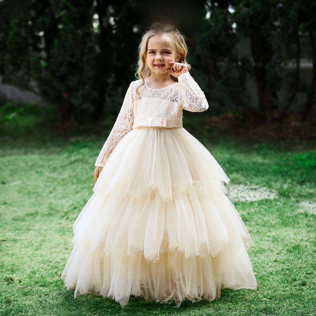 Это очаровательное платье с длинными рукавами идеально подойдет для свадеб и выступлений, в нем любая девушка почувствует себя сказочной принцессой.. Изготовлен из приятной хлопковой смеси, имеет тонкий тюлевый верхний слой для дополнительной элегантности.. Независимо от того, идете ли вы к алтарю или выходите на сцену, это платье обеспечит вашему малышу стиль и комфорт.