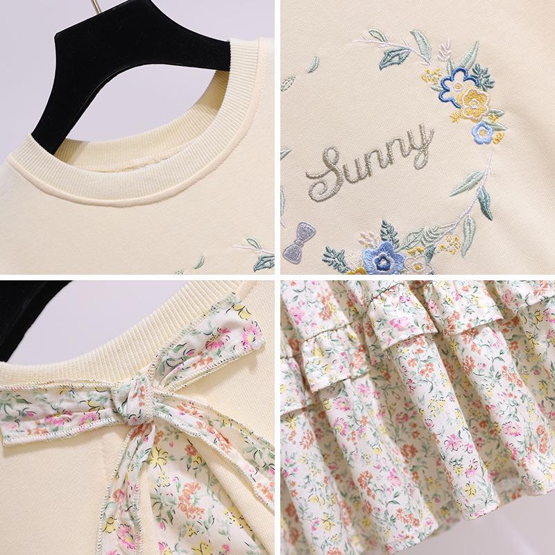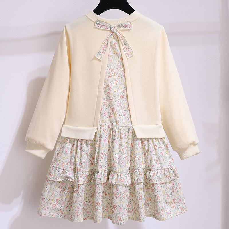 Платье-свитер с цветочным принтом для девочек — образ из двух частей с длинными рукавами на весну и осень