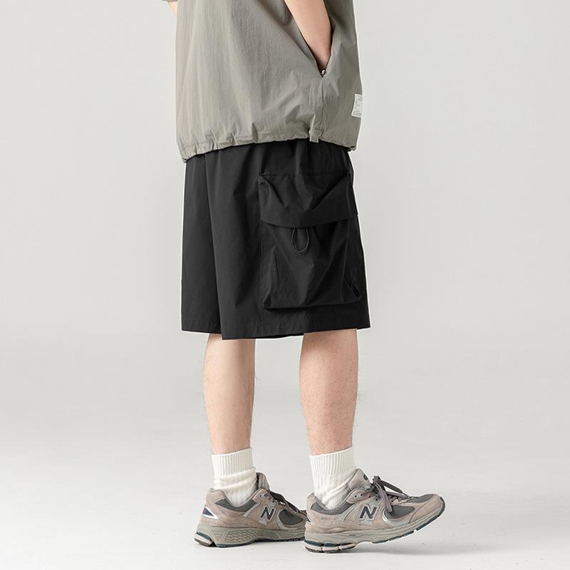 Мужские рабочие шорты в японском стиле с большим карманом, летние свободные повседневные шорты для отдыха на открытом воздухе, однотонные брюки длиной до колена