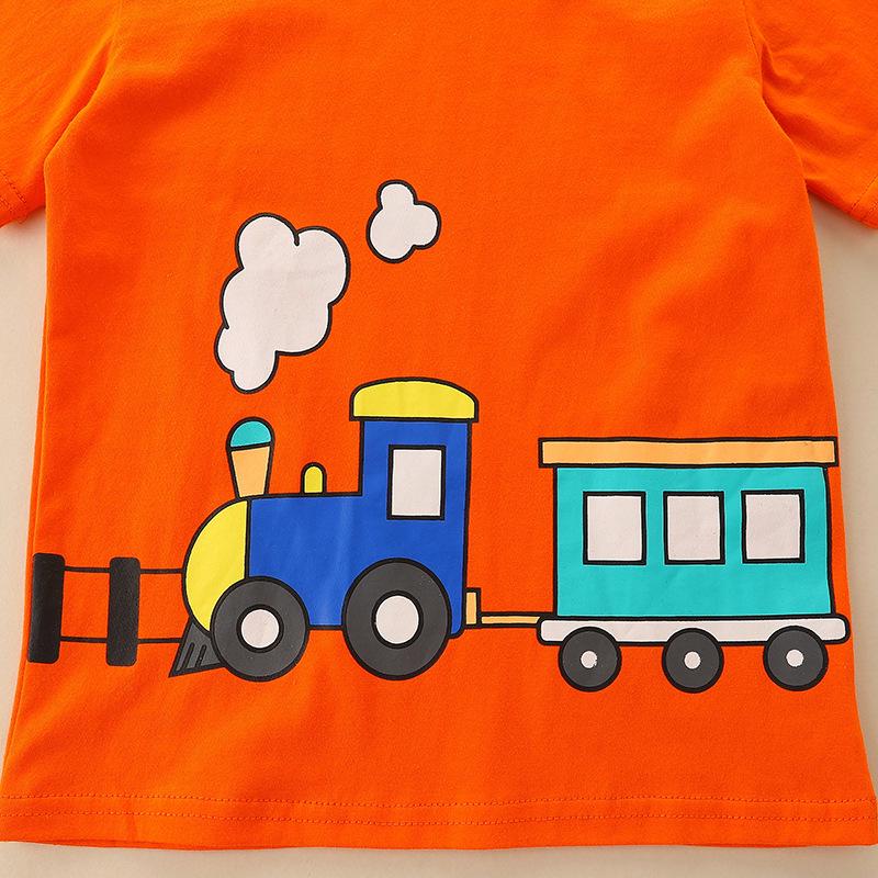 Эта очаровательная детская футболка привнесет яркий летний стиль благодаря игривому принту с мультяшным поездом, выполненному в европейском и американском стиле.. Изготовлен из мягкого трикотажного материала, обеспечивает комфорт и долговечность при повседневной носке.. Круглый вырез и короткие рукава делают его идеальным для сохранения прохлады в теплые месяцы.. Эта футболка идеально подойдет для игровых дней и праздничных случаев. Она станет очаровательным и стильным выбором для гардероба вашего ребенка.