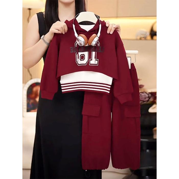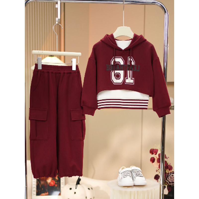 Комплект из 3 предметов: полосатый жилет и свитер с капюшоном для девочек - мода весна/осень