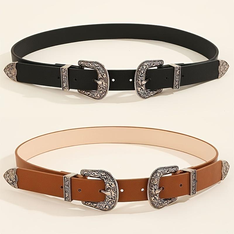 Женский ремень с винтажной резной пряжкой, мужской ремень, модный ремень с двойной пряжкой, хип-хоп, рок, стиль Y2K, PU ремень, подходит для мужчин и женщин