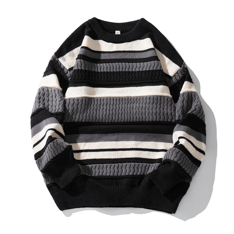 Мужской свитер с круглым вырезом в японском стиле, свободная повседневная рубашка в полоску, лоскутное вязание на осень-зиму